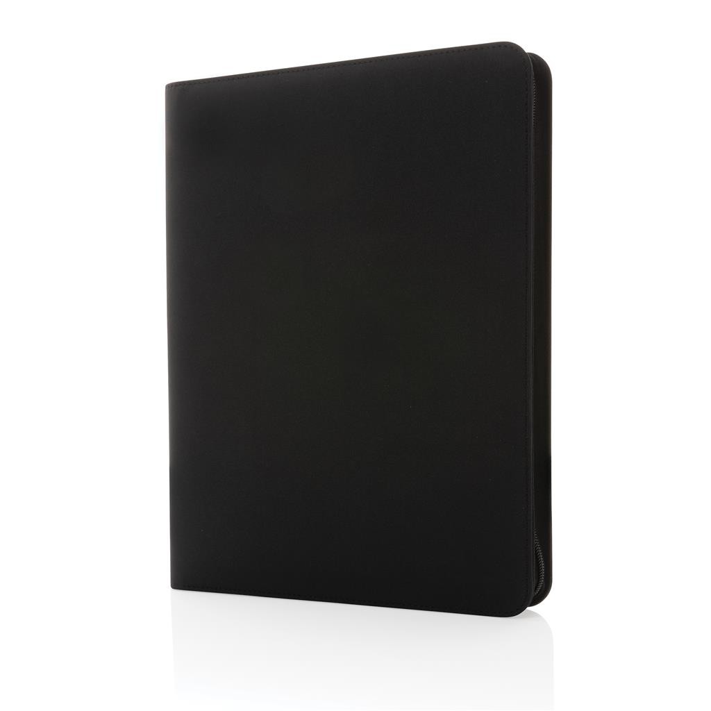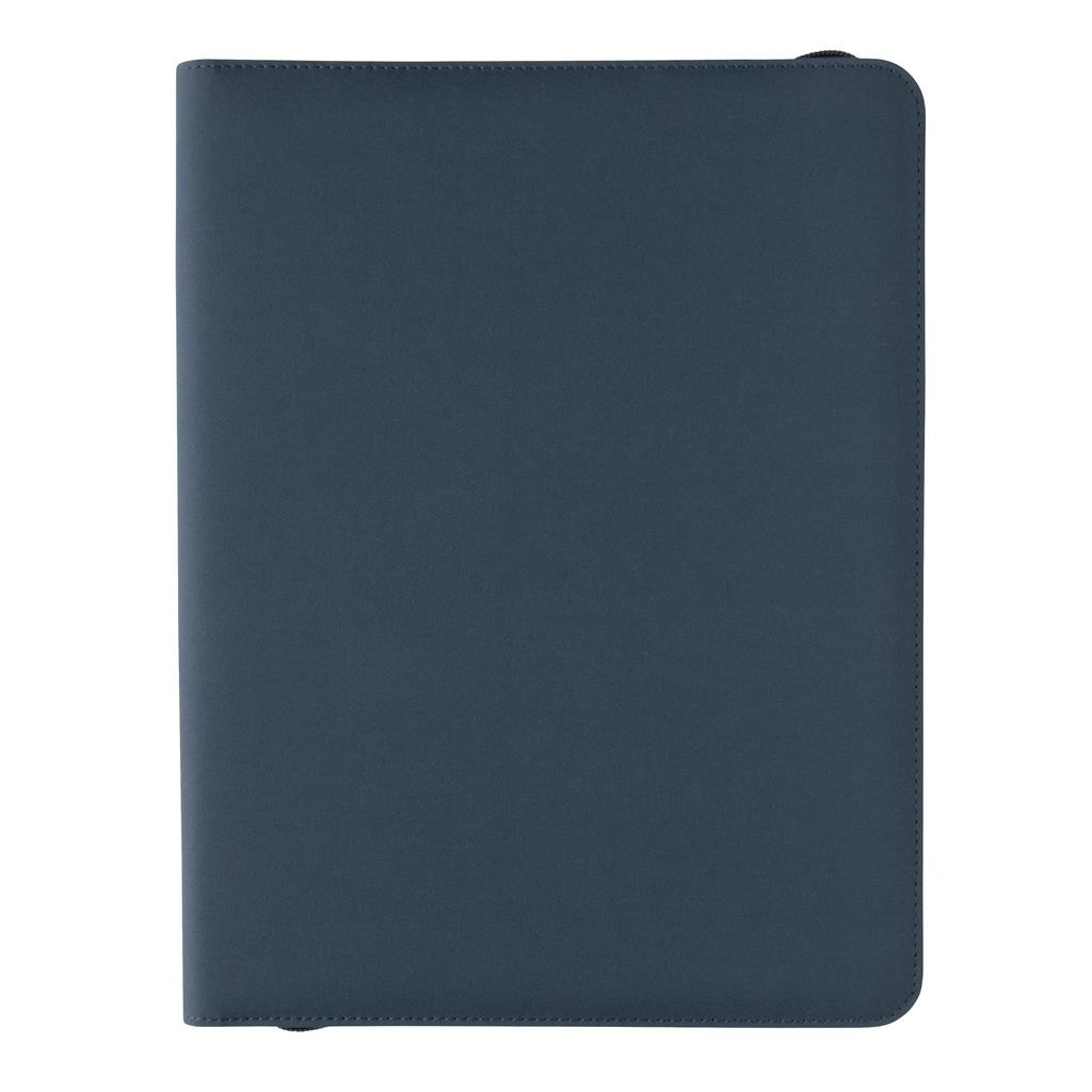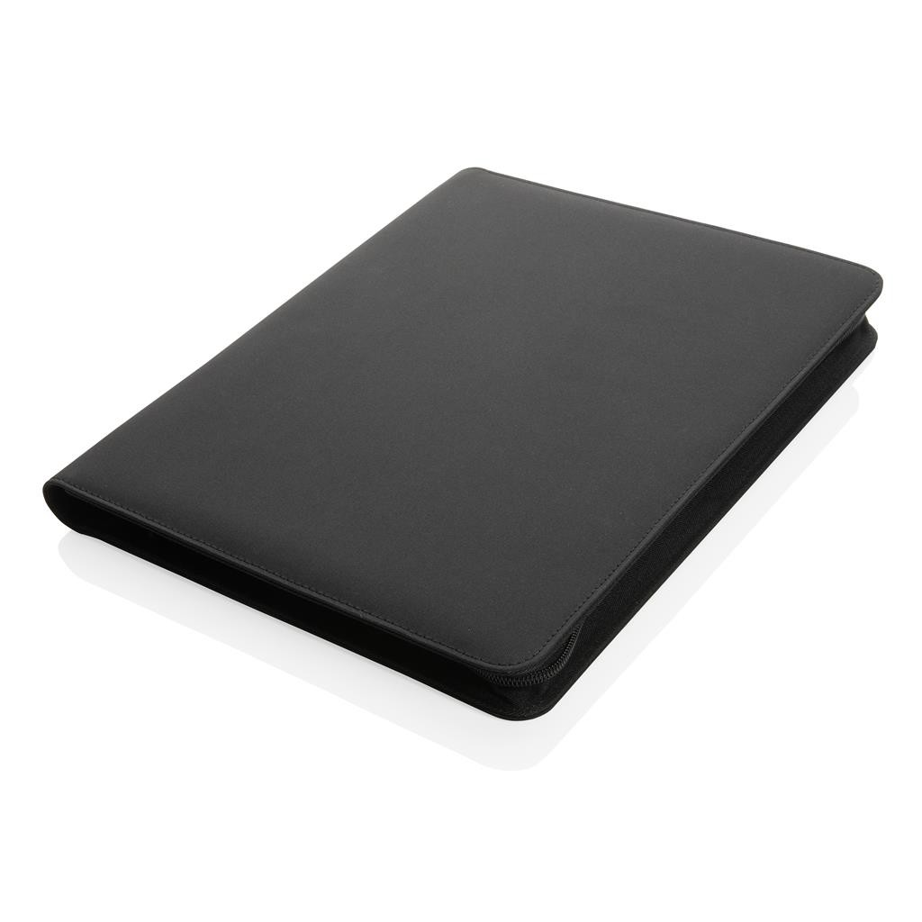 Prémiové portfólio na zips vo formáte A4 s obalom z 300D polyesteru. Vnútri obsahuje vrecko na telefón, stojan na telefón, 2 sloty na vizitky alebo karty a vymeniteľný poznámkový blok z recyklovaného linkovaného papiera (20 strán, 64g/m2). Vyrobené z recyklovaného polyesteru vrátane skenovateľnej zložky AWARE™ garantujúce obsah recyklátu. Na výrobu bolo využitých 8 500ml PET fliaš a bolo usporených 4,8 litrov vody. Z výťažku každého predaného produktu z kolekcie Impact je navyše prispených 2 % na podporu iniciatívy Water.org. Bez PVC.