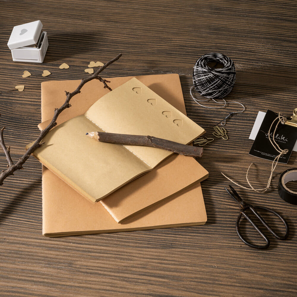 Poznámkový blok formátu A4 s obalom z kartónu (250 g/m²) a zaoblenými rohmi. Obsahuje 80 nelinkovaných všitých listov z recyklovaného papiera, vyhovujúceho podmienkam udržateľného rozvoja lesných porastov.