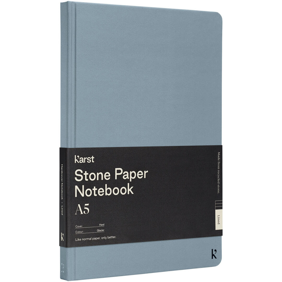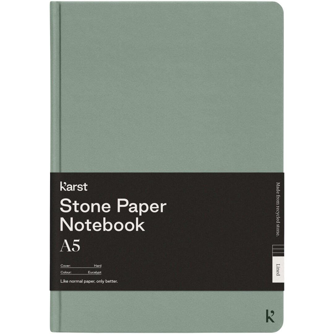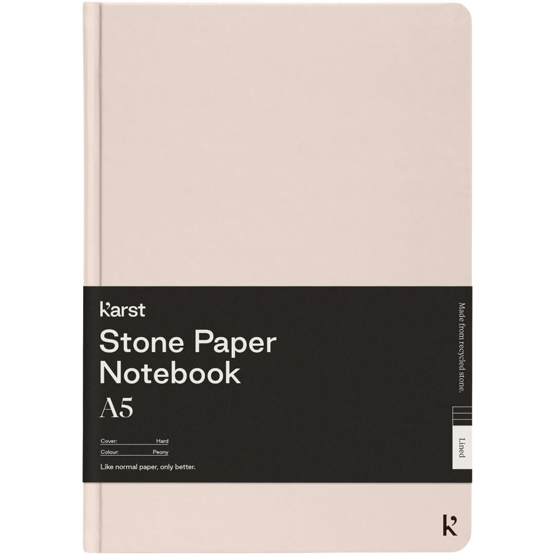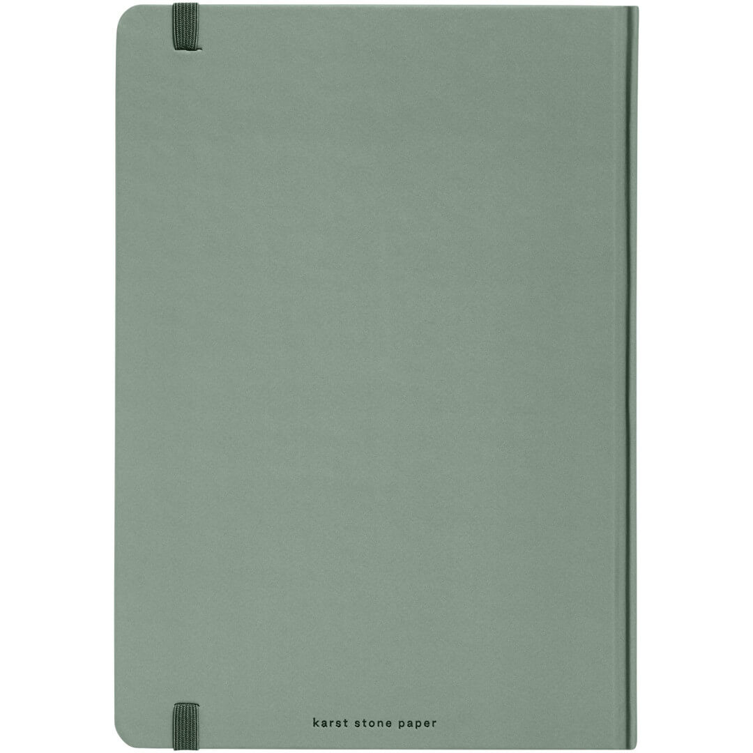 Poznámkový blok veľkosti A5 Karst® v pevnej väzbe je bestsellerom a poteší každého. Hladká textúra stránok a plochá väzba poskytujú dostatočný komfort a priestor na písanie vašich poznámok a nápadov. Má elastickú pásku, ktorá udrží notebook uzavretý, 144 vodotesných a odolných linajkových stránok, rozšíriteľné zadné vrecko na uloženie a oddeľovaciu pásku s tepelne utesnenou špičkou a zaoblenými rohmi.