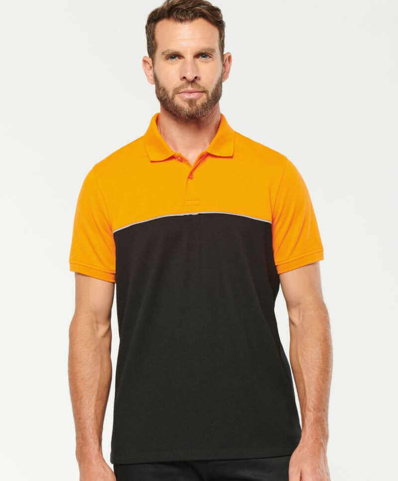 Materiál: 220g/m², 60% česaná bavlna, 40% recyklovaný polyester. Prispôsobený strih, golier z rebrovaného úpletu, zapínanie na 2 gombíky a gombíky tón v tóne, nákrčník, dvojité švy na leme, kontrastné bočné rozparky, kontrastné lemovanie, úprava proti žmolkovaniu, štítok TearAway, pranie na 60°.