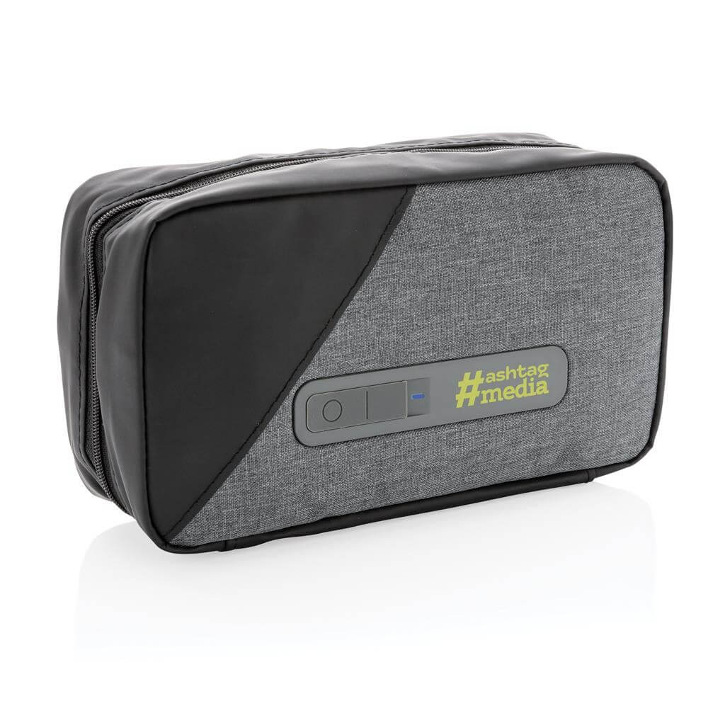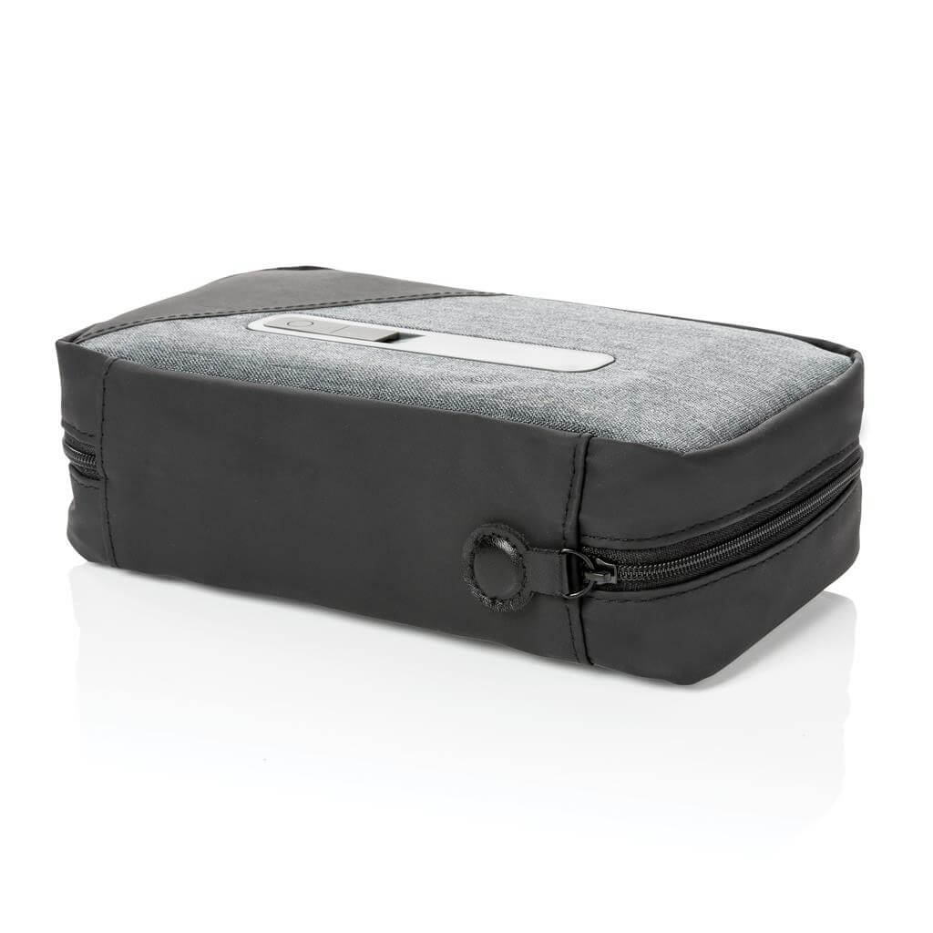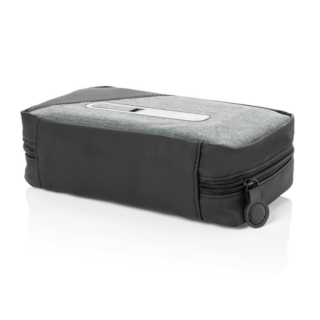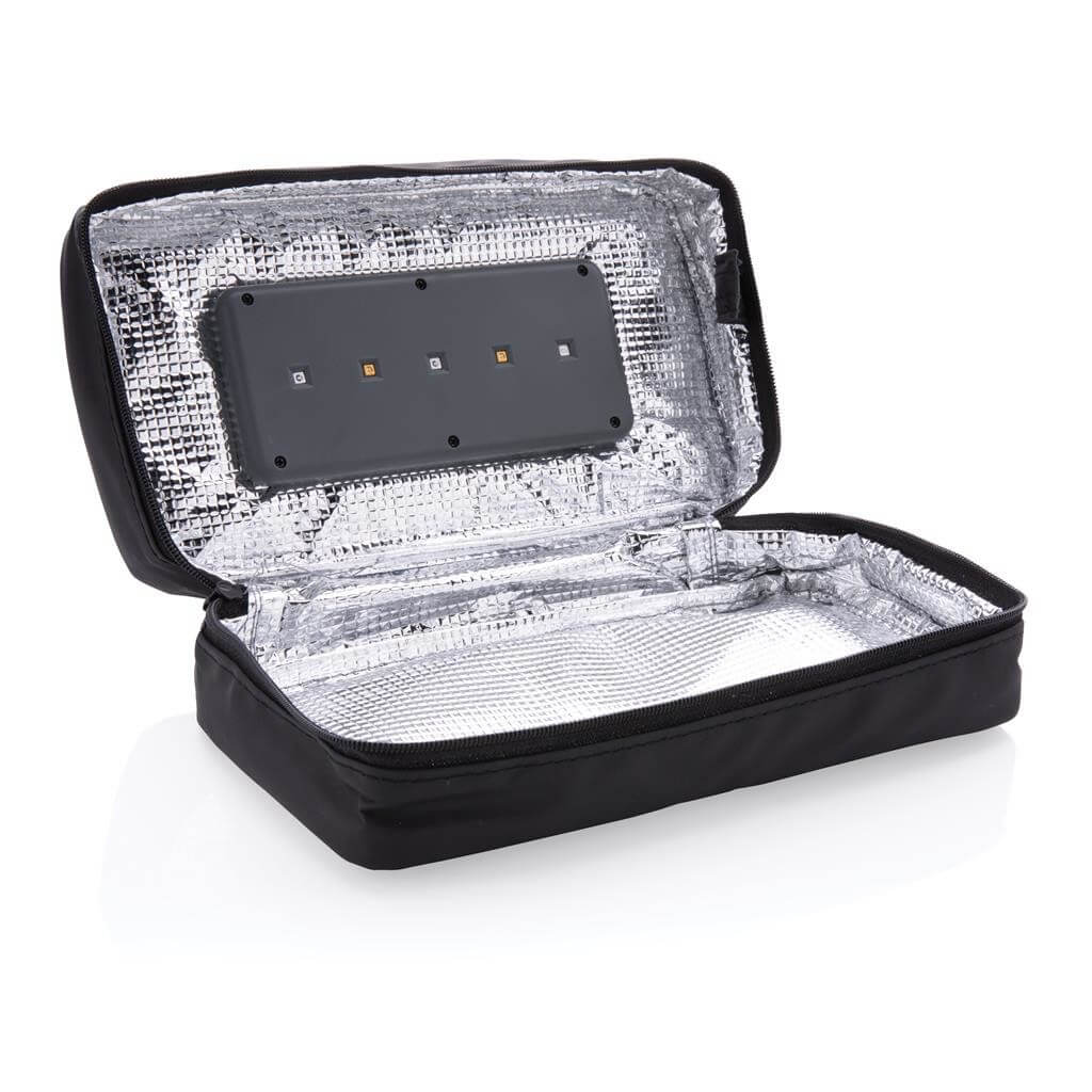 Prenosný UV-C sterilizačný vak na zips pre čistenie často používaných predmetov, ako sú kľúče alebo telefón, kdekoľvek na cestách. UV-C svetlo ničí až 99,9% baktérií na vloženom predmete. Rýchly režim trvajúci 5min, kompletný režim trvajúci 10min. 3 UV-C LED svetlá sú netoxické, neobsahujú žiadnu ortuť a disponujú funkciou automatického vypínania pri otvorení zipsu a magnetického zapínania vaku, čím je zabránené vystavenie používateľa gama žiarenia. Integrovaná batéria s kapacitou 400 mAh pre používanie kdekoľvek na cestách. Vonkajší materiál 300D polyester a PU. Vrátane micro USB nabíjacieho kábla z TPE (bez PVC). Vlnová dĺžka UV-C svetla: 270N-280Nm. 1 batériou typu Li-poly súčasťou balenia.