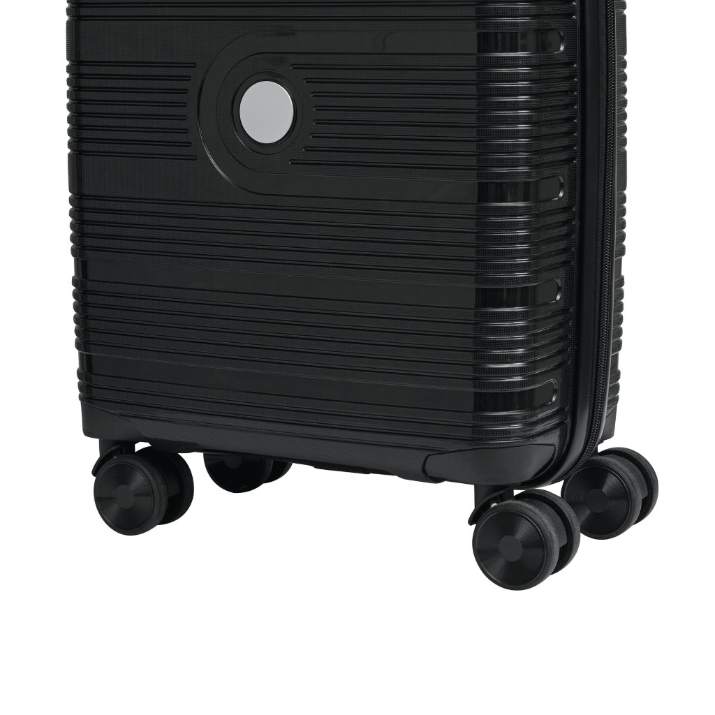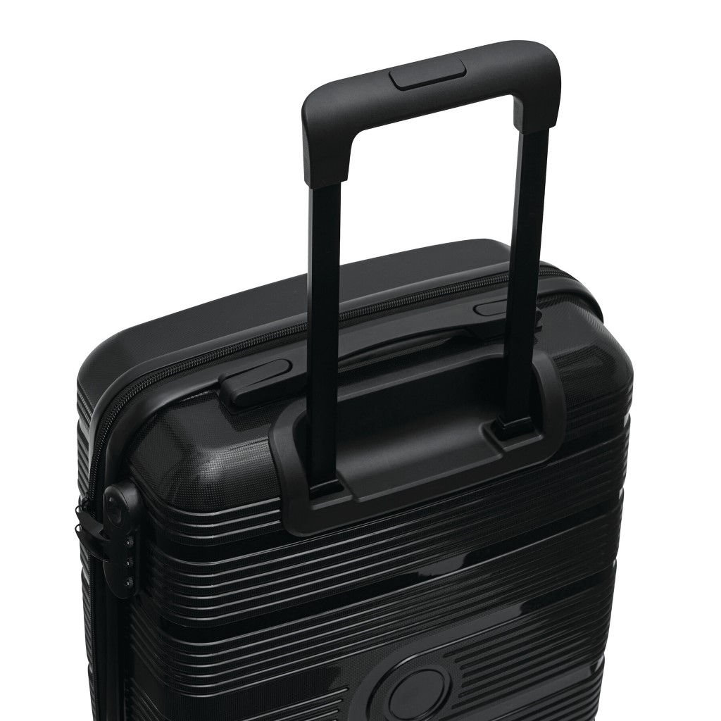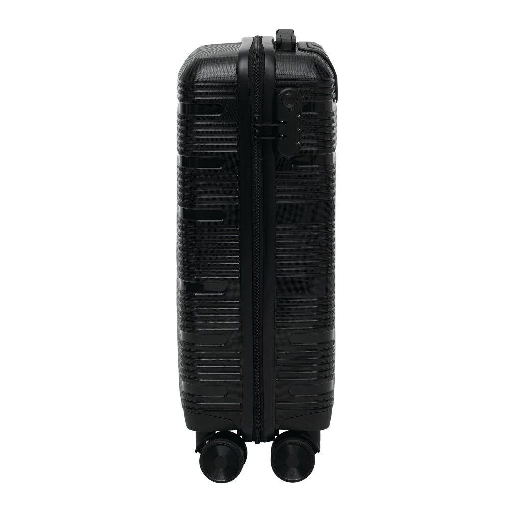 Príručný kufor na kolieskach YORK: vyrobený z mimoriadne odolného materiálu, balenie na oboch úrovniach, so sieťovaným vreckom na zips a elastickým baliacim popruhom, uzamykateľný teleskopický systém koliesok, rukoväť na prenášanie, 4 hladko sa pohybujúce dvojité kolieska 360°, vymeniteľná kovová nálepka s logom na prednej strane, kombinovaný zámok – nástupná veľkosť vhodná pre nízkonákladové letecké spoločnosti.