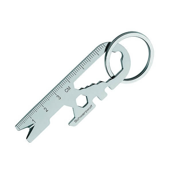 Multifunkčný prívesok na kľúče značky Schwarzwolf, ktorý možno využiť ako 13 druhov náradia hlavne vo chvíľach, kedy nemáte k dispozícii svoj kutilský kufrík alebo otvárač. Balené v darčekovej krabičke Schwarzwolf. Funkcia: držiak na bity, centrovací kľúč (dve veľkosti), magnet, pravítko, nástroj na vytiahnutie klincov, kľúč (šesť veľkostí), otvárač. Materiál: oceľ S/S 420.Rozmery: 7,4 × 2,4 cm.