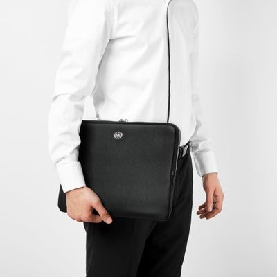 V súlade s DNA značky tento rad kombinuje špičkové materiálové inovácie s klasickými tvarmi. Ostré chrómové kovové podpisy dodávajú dokonalý konečný dotyk. Toto puzdro na notebook nie je len moderné a štýlové, ale je tiež polstrované, aby poskytovalo optimálnu ochranu vášmu počítaču.