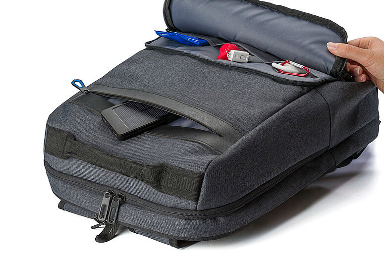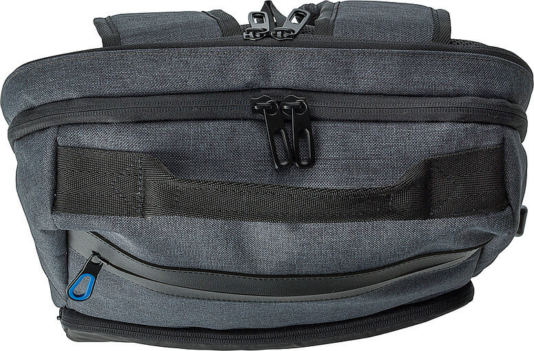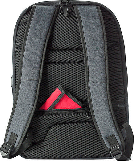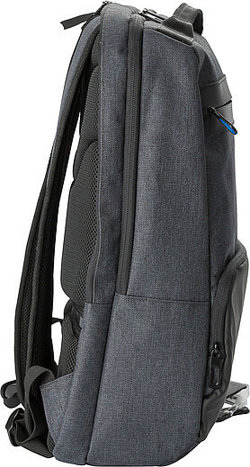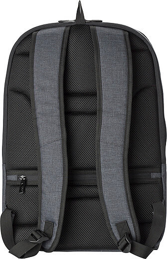 PVC batoh s dvoma hlavnými priehradkami, jeden vhodný pre laptop. Batoh má zadné vrecko na ochranu proti krádeži a vpredu dve vrecká na zips. S polstrovanými nastaviteľnými ramennými popruhmi, PVC, dvojfarebný