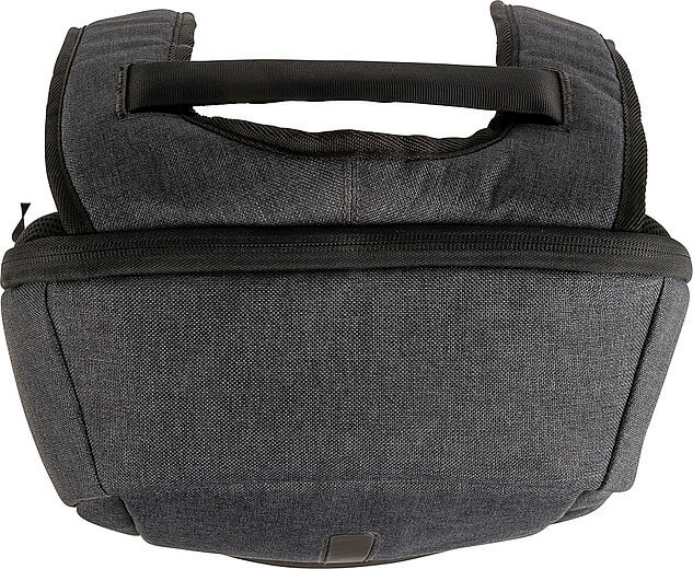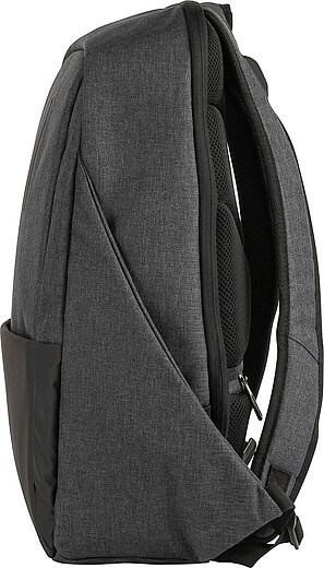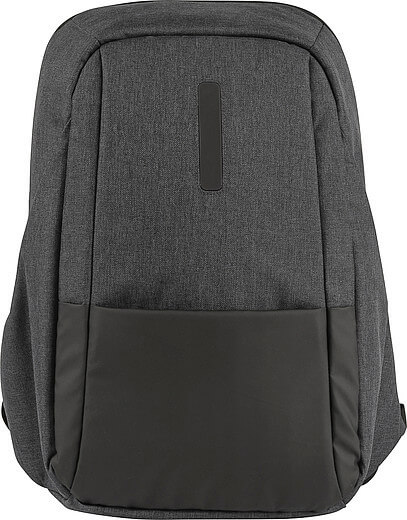 PVC laptop batoh pre 15 palcový notebook. Hlavná priehradka má čalúnené vrecko na notebook a vnútorné vrecká, ako aj vrecko so zipsom na prednej strane. Taška má dva nastaviteľné ramenné popruhy a rukoväť.