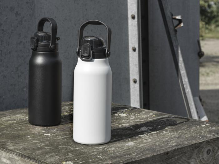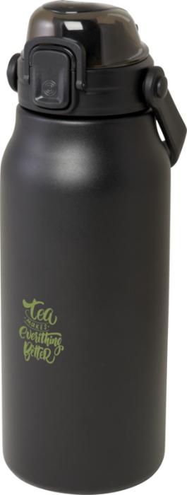 Táto veľká fľaša z recyklovanej nerezovej ocele s certifikáciou RCS vás udrží hydratovaných po celý deň. Medená vákuová izolácia udrží nápoje horúce alebo studené niekoľko hodín a vďaka skladacej rukoväti sa ľahko prenáša. Fľaša je nepriepustná a má mechanizmus ľahkého otvárania tlačidlom. Objem je 1600 ml. Dodáva sa v darčekovej krabičke z recyklovanej lepenky.