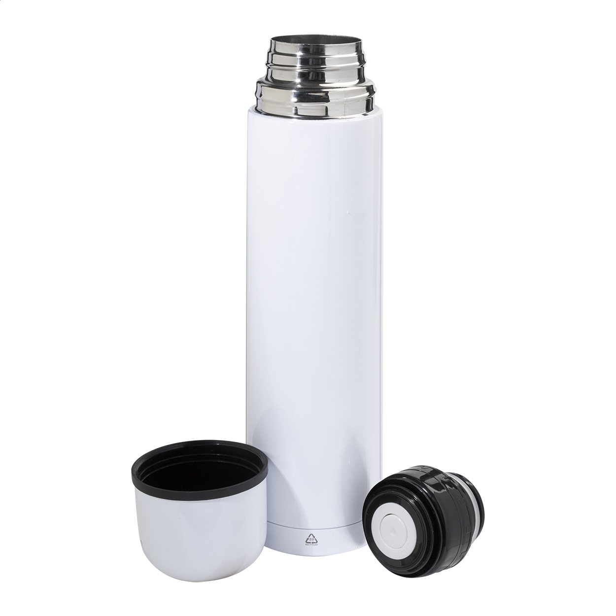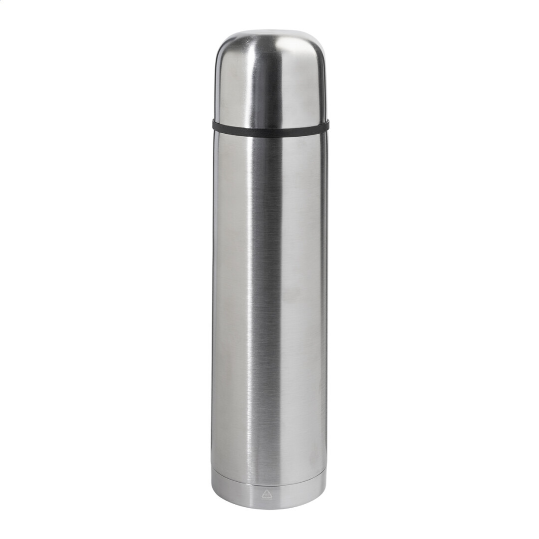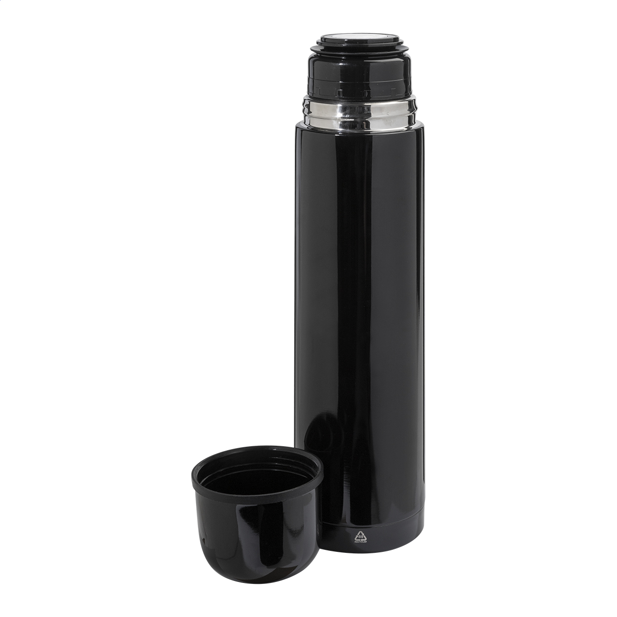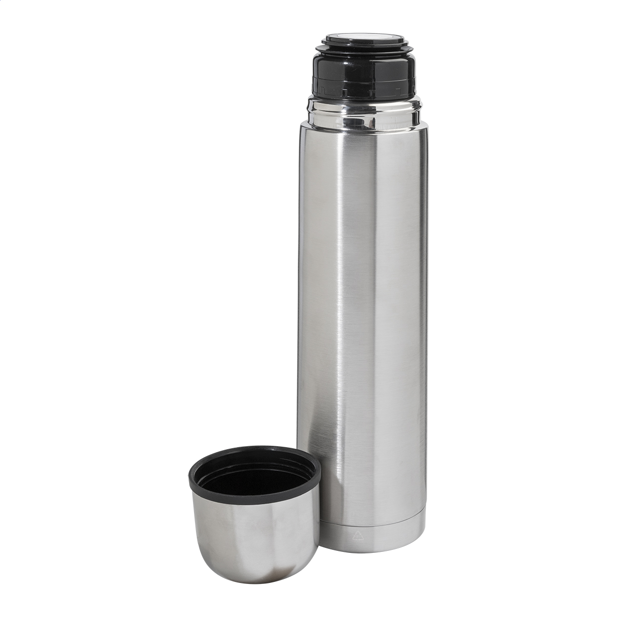 Dvojstenná termoska z recyklovanej nerezovej ocele, 1000 ml. New. Go Green. Vhodné do umývačky riadu: Nie. Vhodné do mirkovlnnej rúry: Nie. Typ steny: Dvojitá stena. Typ izolácie: Vákuová izolácia. Doba izolácie za studena: 12 hodín. Doba izolácie za horúca: 6 hodín. Odolné voči poliatiu / nepriepustné: Nepriepustné