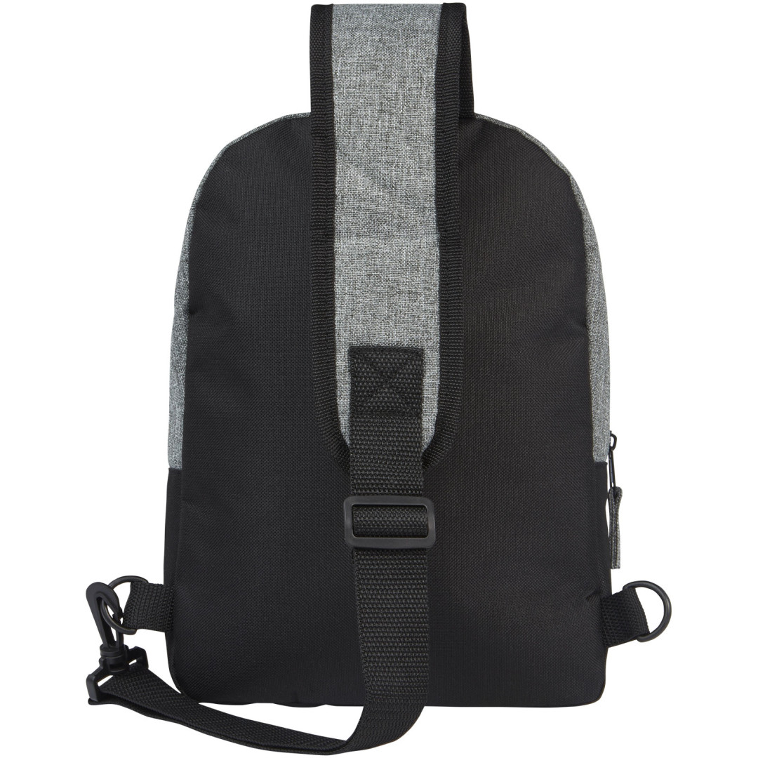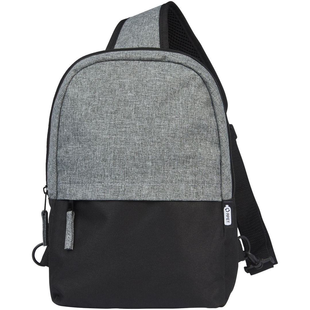 Dvojfarebná recyklovaná taška GRS je zvonku vyrobená zo 100% recyklovaných materiálov a má 1 predné vrecko na zips a hlavnú priehradku na zips s puzdrom na 12" tabliet. Má tiež vnútorné vrecko na zips pre bezpečné uloženie a vďaka plne nastaviteľnému a polstrovanému ramennému popruhu sa pohodlne nosia.