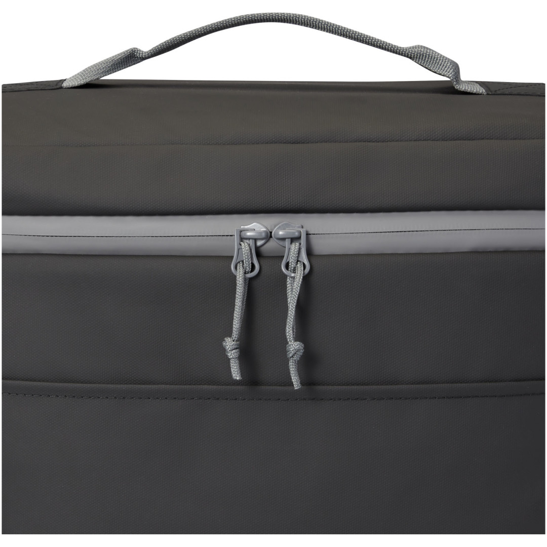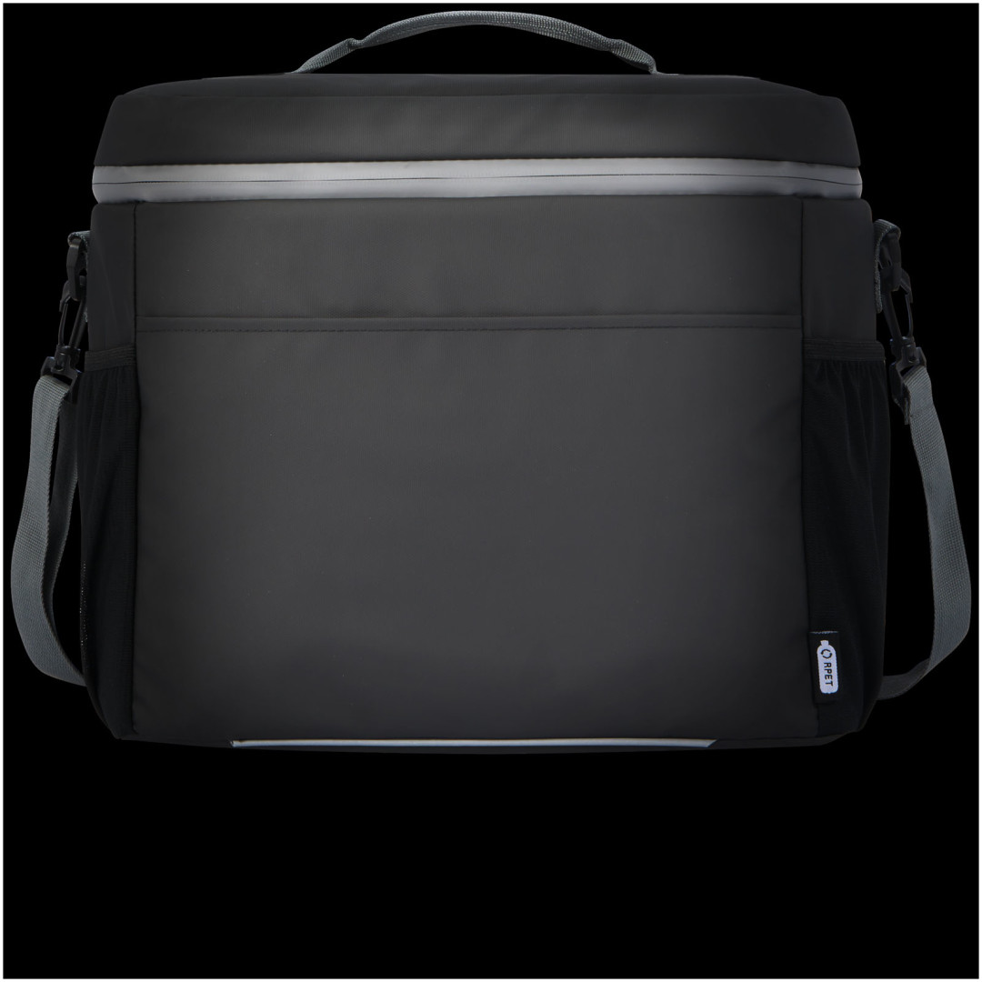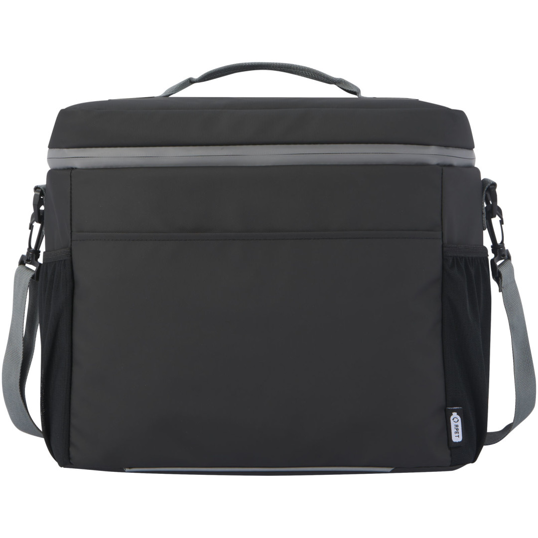 Vodeodolná chladiaca taška na 20 plechoviek vyrobená z recyklovaných materiálov certifikovaných GRS, vrátane zipsov. Je vybavená priestrannou priehradkou na zips, ktorá je vyložená tepelnou izoláciou PEVA s vysokou hustotou a penou vhodnou na uloženie potravín, ktorá udrží nápoje a občerstvenie chladné po celé hodiny. Má tiež 2 sieťované vrecká a jedno otvorené predné vrecko, ktoré poskytuje ďalší úložný priestor. Vďaka popruhu a nastaviteľnému a polstrovanému ramennému popruhu je nosenie veľmi pohodlné. Z recyklovaných materiálov GRS je vyrobená hlavná tkanina, podšívka, popruhy a zipsy. Kapacita: 22 litrov. Neobsahuje PVC.