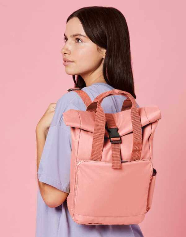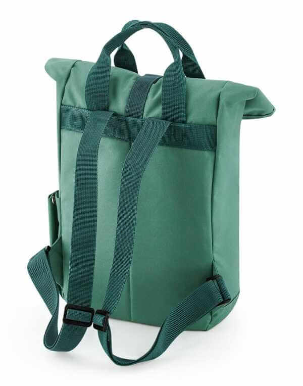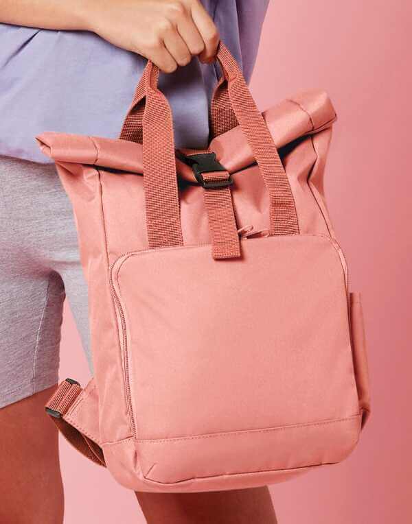 100% polyester (recyklovaný, 600D), popruhové rukoväte na prenášanie, rolovacie zapínanie, nastaviteľné ramenné popruhy, polstrovaný chrbtový pane,l recyklovaný polyester z približne 6 fliaš, predné vrecko, navrhnuté pre jednoduché zdobenie, vonkajšie vrecko na fľašu, štítok TearAway, kapacita: 9 litrov, rozmery: 23x32x11 cm, max. plocha pre výšivku: 14 obrúčok, max. plocha pre potlač: 19 x 14 cm