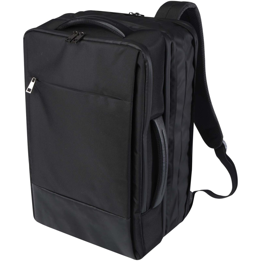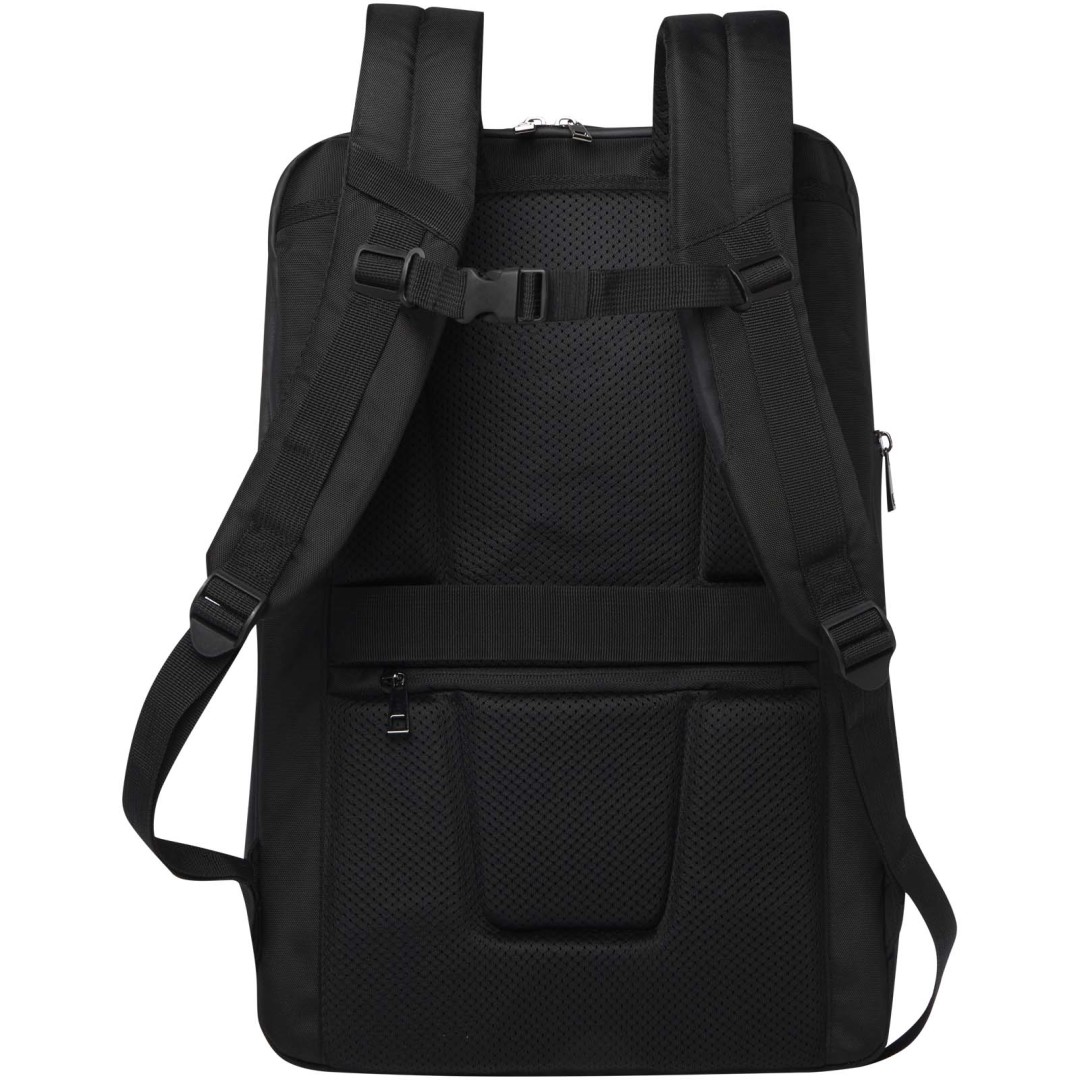 Rozkladací a odolný batoh na notebook Expedition Pro s certifikáciou GRS je perfektnou voľbou pre profesionálov, ktorí potrebujú pri práci neustále cestovať. Batoh s rozšírenou kapacitou ekvivalentnou príručnej batožine na kolieskach je vyrobený z vodoodpudivého materiálu RPET s prémiovými PU prvkami a RPET podšívkou. Obsahuje vyhradenú priehradku na 17" notebook, priehradku na tablet, rozšíriteľný oddiel v štýle batožiny na kolieskach na uloženie oblečenia, integrované nepriepustné veľké vrecko na toaletné potreby a priestrannú prednú priehradku s niekoľkými vnútornými i vonkajšími vreckami na usporiadanie obsahu. Vyrobené s polstrovanými a nastaviteľnými ramenami popruhy, integrovaným vreckom na kartu, pútkom na slnečné okuliare, tvarovanou vzduchovou sieťovinou a polstrovanou rukoväťou, ktoré zaisťujú maximálne pohodlie a pohodlie pri nosení. Objemová kapacita: 35 litrov Neobsahuje PVC.