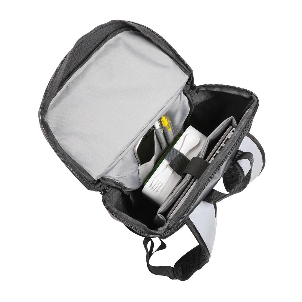 Praktický batoh z vysoko reflexného a vodeodolného PU materiálu pre každodenné použitie. Obsiahle reflexné prvky zaistia viditeľnosť a užívateľovu bezpečnosť aj v noci. Priestranný hlavný oddiel vrátane priehradky na 15,6 "notebook a malé vrecká na drobnosti. Pretiahnuté zapínanie na zips umožňuje jednoduchú organizáciu batohu. Miera reflexivity je v súlade s EN 13356: 2001.