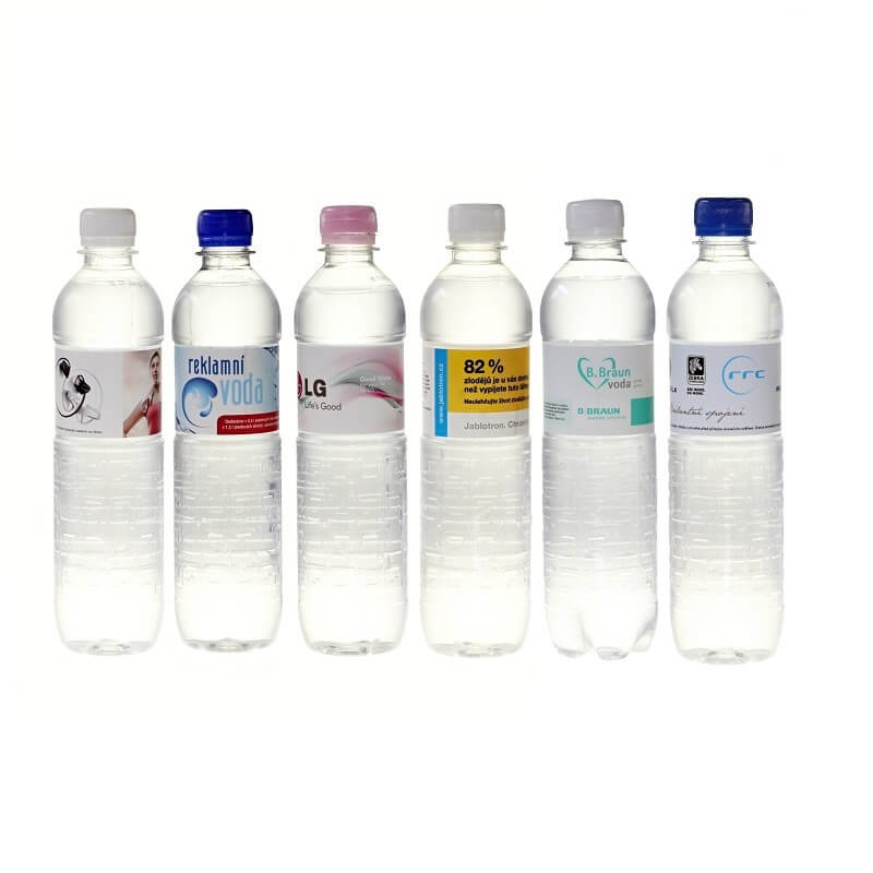 Na náš reklamný trh dodávame vysoko kvalitnú pitnú vodu, čerpanú z podzemného jazera na území SR. Minimálna trvanlivosť: 1 rok od dátumu výroby, rozmery etikety: 182 x 46 mm, materiál PVC, potlač CMYK. Balenie vody: 12 ks v balení, 1512 ks na palete. Veľmi ľahké a pohodlné balenie, skvelý design. Zloženie našej vody je veľmi stabilné. Voda je vhodná na každodennú spotrebu. V porovnaní s vodami na slovenskom trhu môžeme vyzdvihnúť jej minimálny obsah sodíka (menej ako 1 mg/liter) a optimálnu celkovú mineralizáciu 320 mg/liter (odporúčané rozmedzie je 250 až 500 mg/liter). Naša voda je deklarovaná ako voda KOJENECKÁ (tj najvyšší stupeň kvality), teda nemusí prerobiť akékoľvek úpravy a je neustále pod dohľadom akreditovaného laboratória, a to v každej výrobnej šarži. Spotrebiteľ má teda záruku, že kupuje chemicky aj microbiálne čistú vodu, zodpovedajúcu všetkým hygienickým požiadavkám.
