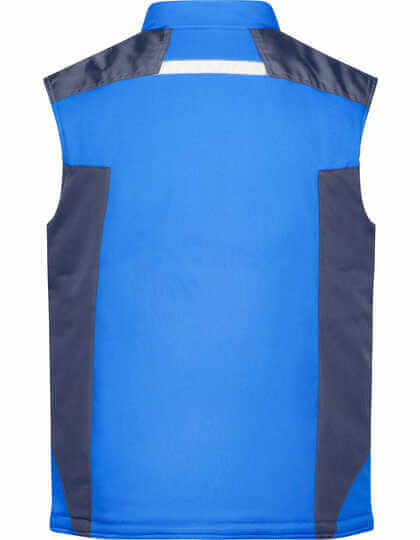 Profesionálne softshellová vesta s teplou podšívkou | Robustný a odolný softshellový materiál | Odolnosť proti vetru a vode (vodný stĺpec 2 000 mm) | Priedušnosť a priepustnosť pre vodnú paru (2 000 g/m²/24 h) | Stojačik s mäkkým flísom na vnútornej strane | Oblasť ramien vystužená materiálom CORDURA ® | Krytý zips po celej dĺžke s ochranou proti vetru | Bočné vrecká, náprsné vrecko a vnútorné vrecko na zips | Náprsné vrecko s klopou, vnútorné vrecko na mobilný telefón | Reflexné prvky (bez ochrannej funkcie/bez osobných ochranných pomôcok) na prednej i zadnej časti | Zips na ozdobu vzadu