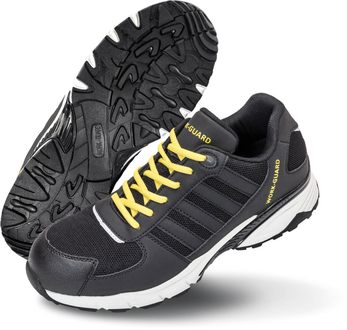 vrchná vrstva: polyuretán a odolná sieťovina, medzipodošva: kompozitný, podrážka: guma (EVA), špice: kompozitný z polykarbonátu polykarbonátová kompozitný špička, kompozitný medzipodrážka pre ochranu chodidla, ľahký športový dizajn, priedušné, polstrovaný jazyk, gumová podrážka (EVA), SRC protišmyková podrážka, reflexné detaily, antistatické, podšívka zo sieťoviny, žlto-čierne šnúrky a náhradné sady v šedo-žltej a čierno-šedé, priemerná hmotnosť páru: 1 kg, spĺňajú normu EN 20345: 2011 S1P SRC