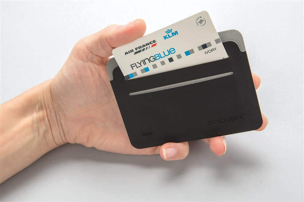Mimoriadne tenké, ľahké a vďaka RFID ochrane bezpečné puzdro na karty v jedinečnom modernom dizajne. 4 ľahko prístupné sloty dokážu uchovať až 8 kariet. RFID ochrana znemožňuje elektronickej krádeže z platobných kariet alebo krádeže identity z osobných dokladov. ochranný vzor®.