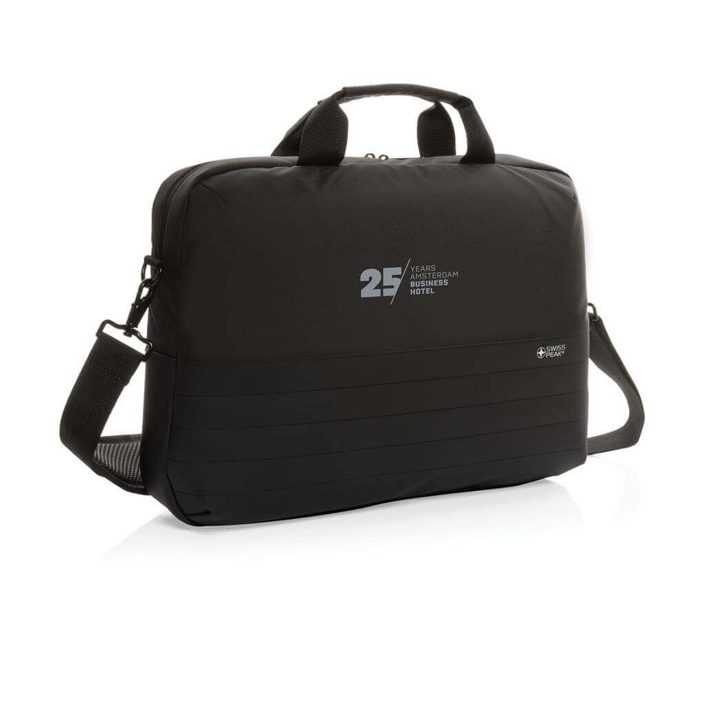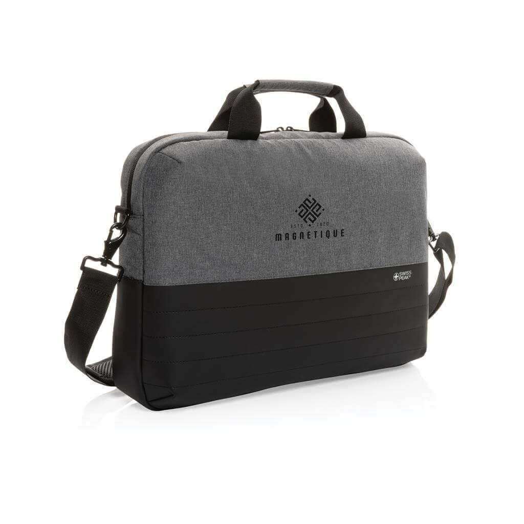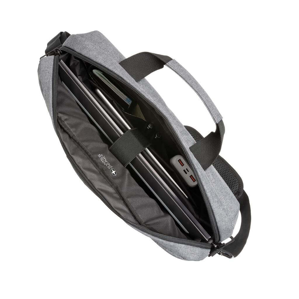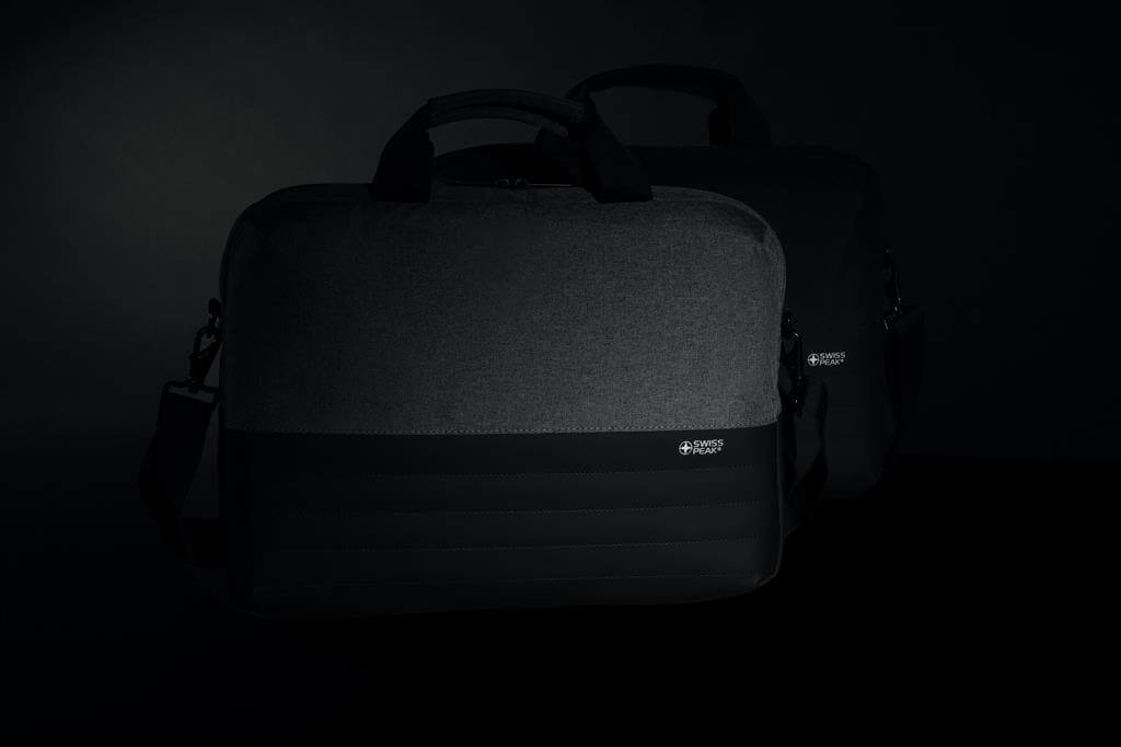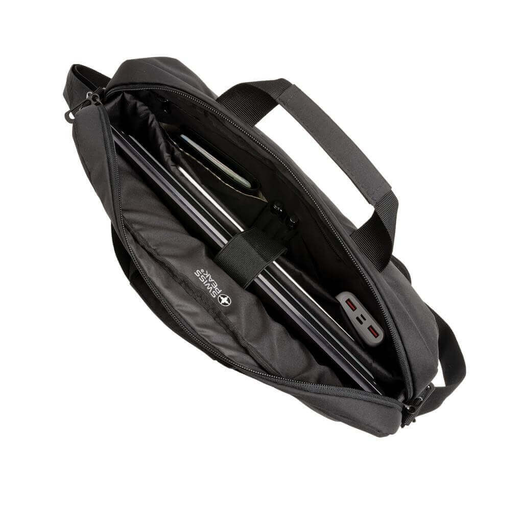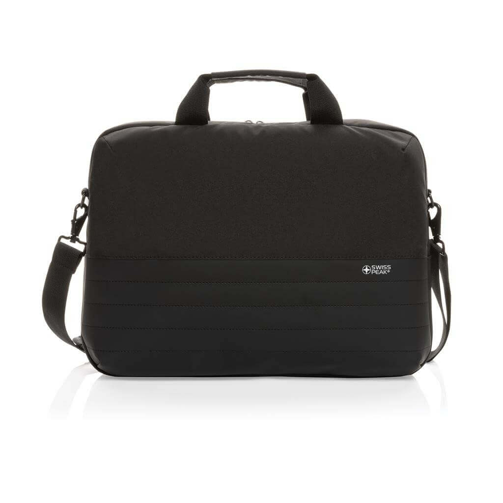 Taška Swiss Peak pre skvelú organizáciu všetkých pracovných potrieb. Hlavný priestor na zips pre až 15,6" notebook a tablet. Množstvo vreciek na príslušenstvo, RFID vrecká na peňaženku a ďalšie doklady. USB port pre pripojenie powerbanky vo vnútri a ľahké nabíjanie zariadenia po pripojení k výstupu na vonkajšej strane. Popruh na madlo kufra na zadnej strane Vyrobené z recyklovaného polyesteru AWARE ™.Na výrobu bolo využitých 20,3 500ml PET fliaš a bolo usporených 12,1 litrov vody.Z výťažku každého predaného produktu z kolekcie Impact sú navyše prispené 2% na podporu iniciatívy Water.org.