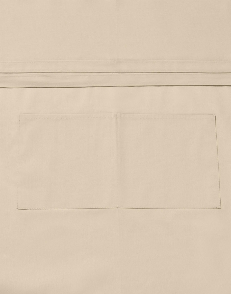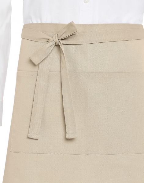 -205 g/m² -65 % polyester (recyklovaný), 35 % bavlna (recyklovaná) -stála farba -jednoduchá údržba -reaktívne farbenie -priechodné robustné viazanie zástery v páse -veľké náplasťové vrecko s 2 priehradkami (40 x 20 cm) -stredná dĺžka zástery -rozmery: 100 x 78 cm -možnosť prania na 60 °C.