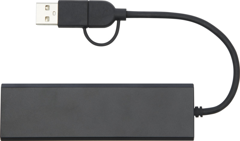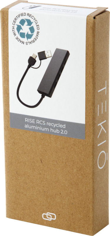 Rozbočovač USB 2.0 vyrobený z recyklovaného hliníka RCS s elegantným obdĺžnikovým krytom z recyklovaného hliníka. Disponuje 3x USB 2.0 portami a 1x Typ-C PD (Power Delivery) portom, ktorý umožňuje prenášať dáta s prenosovou rýchlosťou až 480 Mbps. Priložený vstupný adaptér Typ-C vám umožňuje používať toto zariadenie s notebookmi a počítačmi vybavenými USB-A a Typ-C. Dodávané v prémiovej krabičke zo 100% recyklovaného kraftového papiera s farebnou samolepkou.