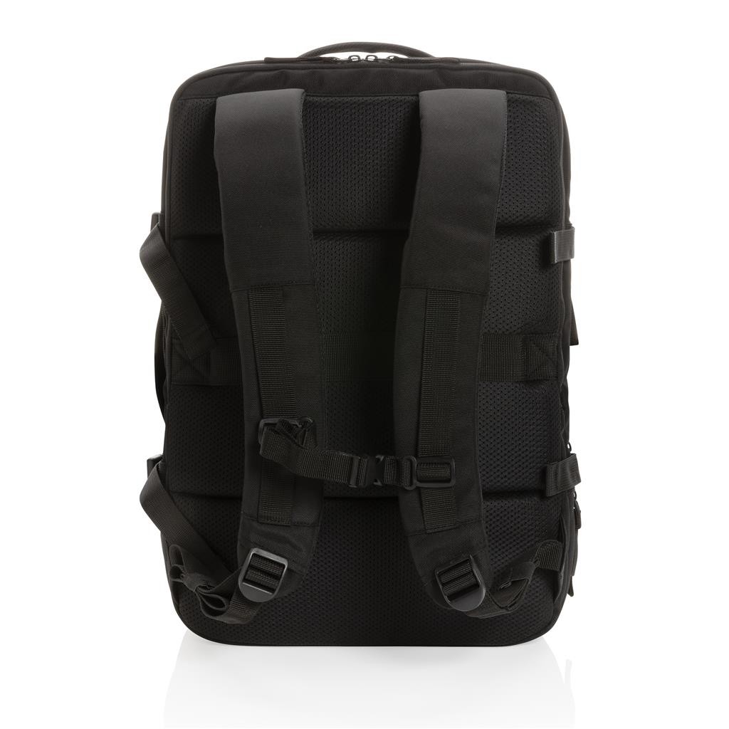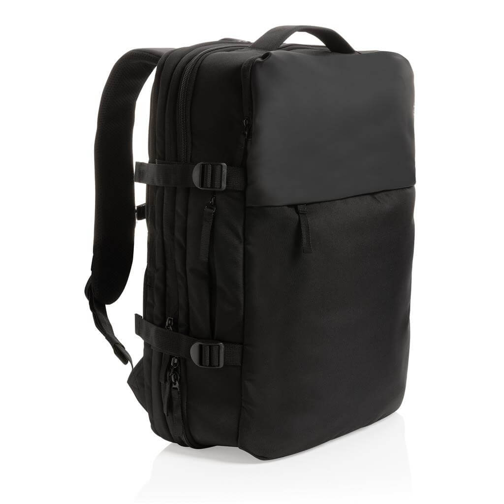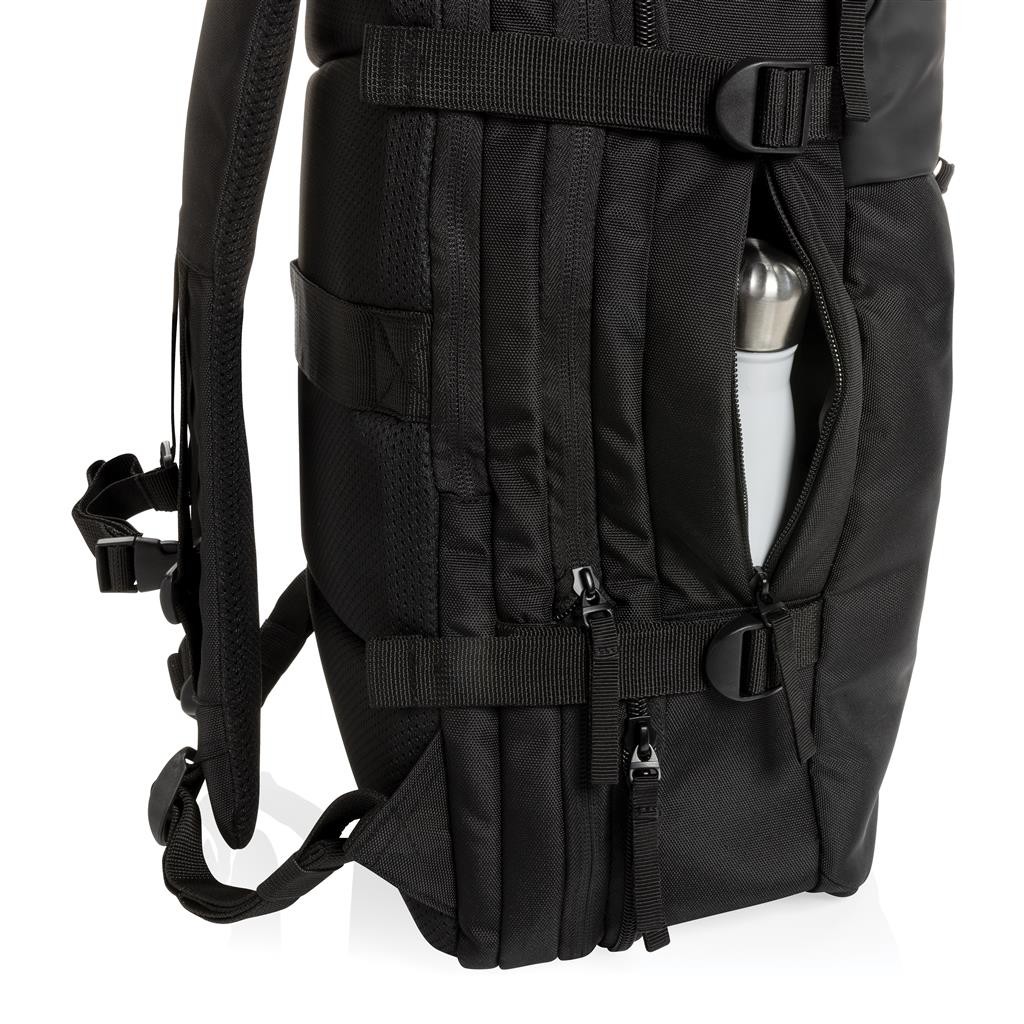 Mimoriadne praktický rozšíriteľný batoh ideálny na víkendové výlety. Hlavný oddiel je možné rozšíriť až o 35 %. Bočné kompresné popruhy zaručujú pevnosť a stabilitu. Prístupný oddiel na až 15,6" notebook umožňuje pohodlné vybratie pri letiskovej kontrole. Chytro organizovaný systém vreciek umožňuje vo veciach udržiavať poriadok. Popruh na madlo kufra na zadnej časti. Vyrobené z recyklovaného polyesteru vrátane skenovateľnej zložky AWARE™ garantujúce obsah recyklátu. Na výrobu bolo využité 38,4 500ml PET fliaš a bolo usporených 22,9 litrov vody.Z výťažku každého predaného produktu z kolekcie Impact je navyše prispených 2% na podporu iniciatívy Water.org.bez PVC.