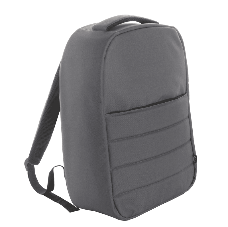 Plne polstrovaný batoh RPET s priehradkami na zips, polstrovaná priehradka na notebook (15 ") a tablet (12"), popruh na vozík, ergonomické zadné a ramenné popruhy. So skrytým vreckom proti krádeži. 300D RPET polyester. S výrazným štítkom RPET.