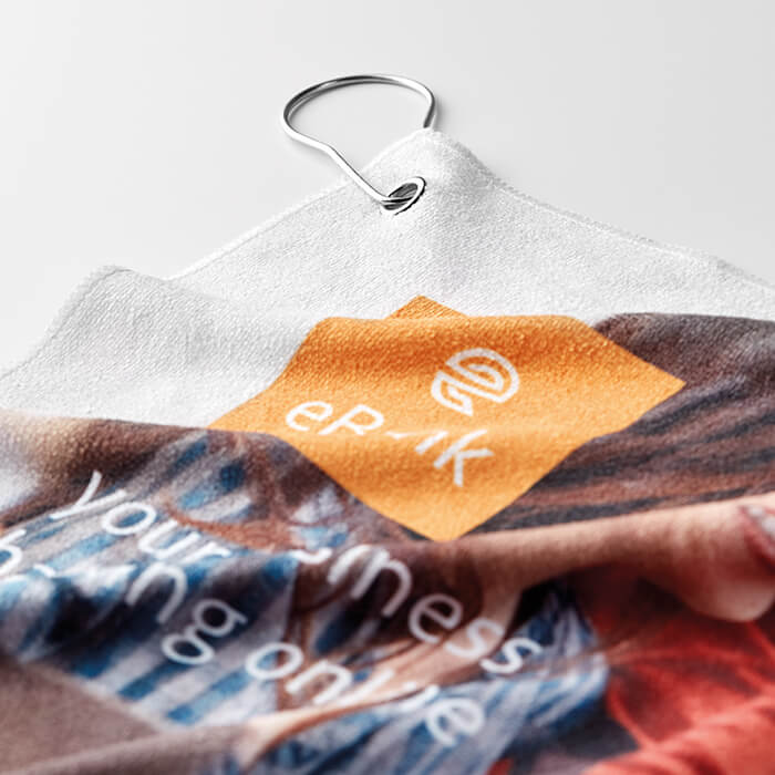 Plno farebne potlačiteľný golfový uteráky (280 g/m2) vyrobené zo 100% RPET. Uterák obsahuje vstavanú priechodku a háčik na zavesenie uterákov na tašku alebo iné vybavenie. Predná strana uteráka je plnofarebná a má jemnú textúru. Zadná strana uteráka je biela. Pretože sú uteráky tlačené digitálne, konečné farby tlače môžu mať až 15% odchýlku vo farbe a tieňovaní z dodaných originálnych umeleckých diel. Môže byť dodaný samostatne v plastovom obale alebo v papierovom rukáve za príplatok. Dostupný v rozmeroch 30 x 30 cm alebo 59 x 30 cm. Vhodné aj na iné športy ako golf.