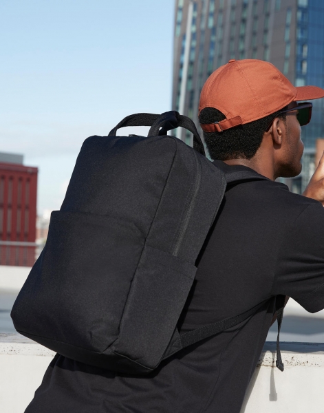 ·100% polyester (recyklovaný, 600D) ·Vodoodpudivá tkanina ·Uchá na prenášanie ·Vypolstrované nastaviteľné ramenné popruhy ·Popruh na batožinu na zadnej strane ·Veľká hlavná priehradka so zipsom ·Vypolstrovaná priehradka na notebook na zadnej strane, kompatibilná až so 16 veľkosťami obrazovky · Predné vrecko na zips ·Vnútorné vrecká vzadu · Bezpečnostné vrecko vzadu na zips ·Jednofarebné zipsy vyrobené z PU ·Jednoduché preznačenie ·Kapacita: 16 litrov ·Rozmery: 41 x 37 x 11 cm ·Max. Plocha na vyšívanie s okrúhlym vyšívacím rámikom: 18 (predné vrecko), 15 (predná horná časť) ·Max. Plocha potlače v cm: 20x24 (predné vrecko), 24x15 (predná horná časť)