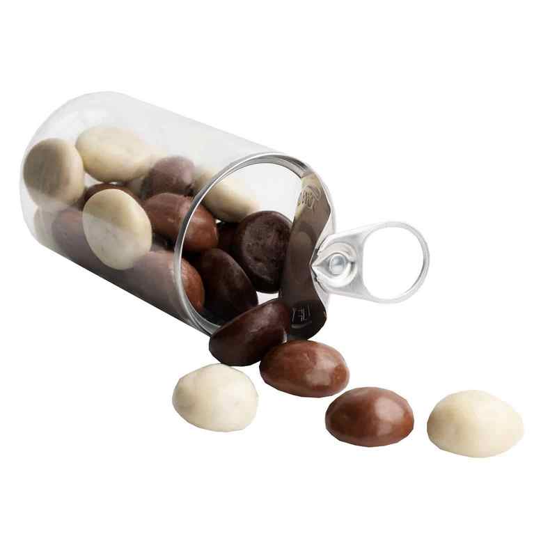 Sladkosti boli zapečatené v plechovkách, čo umožňuje, aby výrobky zostali dlhšie čerstvé. Plechovky boli na druhej strane vložené do papierového obalu s rukoväťou v tvare vrecka, čo uľahčuje podávanie a zaisťuje chutnú prezentáciu. Balenie je k dispozícii v dvoch typoch papiera podľa vášho výberu: biely a kraft a možno ho plne prispôsobiť digitálnou tlačou!