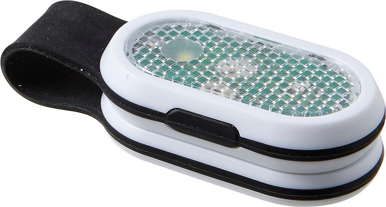 Bezpečnostné svetlo s výkonnými LED diódami COB v bielej a červenej farbe. Silné magnety spájajú prednú a zadnú stranu pomocou silikónového remienka. Vrátane batérií.