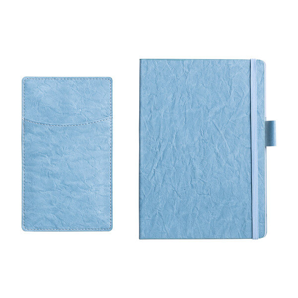 Zápisník v pevnej väzbe z PU s odnímateľným magnetickým puzdrom na telefón, elastickou páskou na zatváranie a pútkom na pero. 70 linajkových listov (80 g/m2). Dodávané s 25 ks lepiacich lístkov a 5 x 25 ks farebných fóliových označovačov.