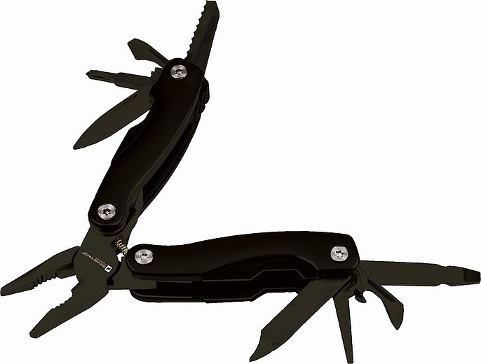 Značkové kombinované náradie Schwarzwolf v celočiernom prevedení, 13 nástrojov, v čiernom neoprénovom púzdre. Balené v darčekovej krabičke. Materiál: nerezová oceľ, hliníková rukoväť s protišmykovým povrchom. Odporúčaná technológia tlače: laser L1. Maximálna veľkosť tlače: 20 × 5 mm. Rozmery: v zatvorenom stave 6,8 cm. Uhlíková stopa: gCO2 e533.