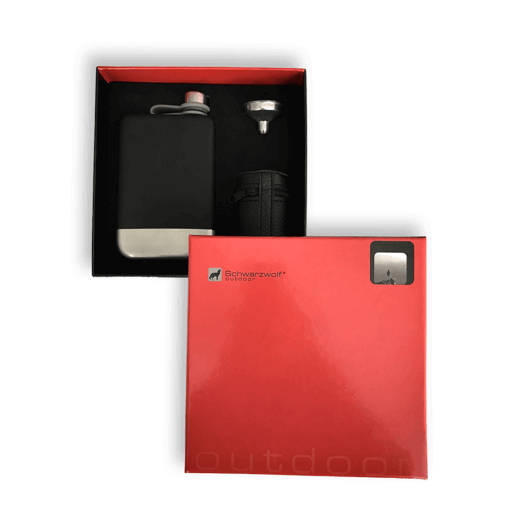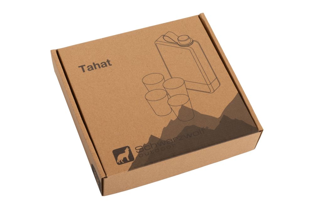 Súprava Schwarzwolf obsahujúca likérku s objemom 266 ml, štyri kalíšky s objemom 30 ml v čiernom puzdre a lievik. Likérka má hladký čierny povrch a striebornú spodnú časť z nerezovej ocele. Na spodnej časti likérky je umiestnené logo Schwarzwolf. Balené v darčekovej krabičke. Materiál: nerezová oceľ Odporúčaná technológia tlače: laser L1 Maximálna veľkosť tlače: 50 × 15 mm Rozmery: likérka 14,5 × 8 × 2,5 cm, kalíšky v obale 6,5 × 4 cm Uhlíková stopa: gCO2e 2760