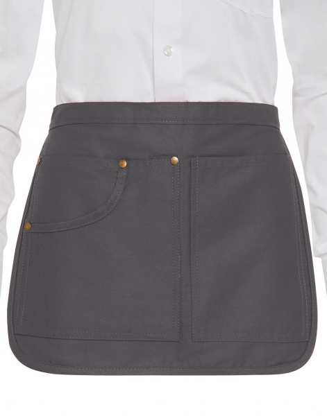 -205 g/m² -65 % polyester, 35 % bavlna -jemný keper -stálofarebný -ľahká údržba -reaktívne farbený -nastaviteľný pomocou kovovej pracky a starožitnej mosadznej karabínky v páse -slučka na vnútornej strane pása na predĺženie pásu -4 samostatné vrecká rôznych tvarov a veľkostí -vrátane vrecka na pero a otvárač na fľaše -možno nosiť na boku alebo vpredu -rozmery: 78 x 52 cm -možno prať do 60 °C.