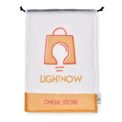 Sieťovaná taška na čerstvé potraviny vyrobená z RPET (certifikát pre styk s potravinami, FCA) s farebnou polyesterovou šnúrou. 1-4 farebná potlačená etiketa alebo tkaná etiketa (cca 4x4cm) je v cene. Hromadné balenie (bez použitia plastov) a voliteľne každé vrecko môže byť zabalené do papierového obalu s vlastným potlačeným dizajnom. Možnosť výberu z troch rozmerov vrecka: 20 x 30 cm, 35 x 30 cm, 40 x 30 cm. Ručne umývateľné.