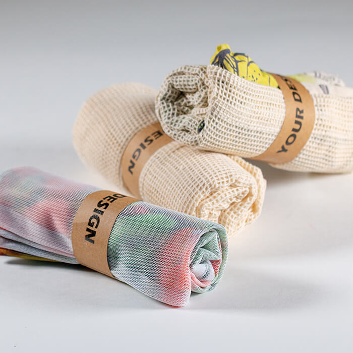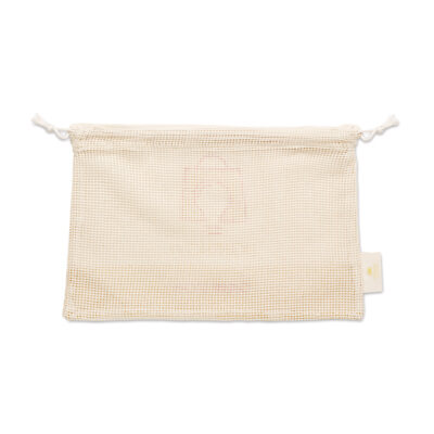 Sieťované bavlnené vrecko na potraviny,na mieru pre čerstvé potraviny, vyrobené zo 100% bavlny. Jedna strana je z bavlny (140 g/m²), ktorú je možné potlačiť celoplošne v požadovanom prevedení. Druhá strana je zo sieťovanej bavlny. Rozmer 30x20cm. Hromadne zabalené (nepoužívajú sa žiadne plasty) a voliteľne každé vrecko môže byť zabalené do papierového obalu s vlastným potlačeným dizajnom. Možno prať v rukách.