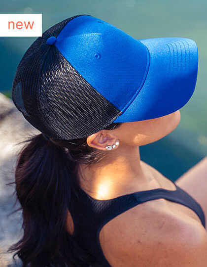 Hlavná látka: 100% certifikovaný recyklovaný polyesterový keper / bočná a zadná strana: 100% certifikovaný recyklovaný polyester (vyrobené z 3 fliaš) | Klasická šiltovka typu „trucker“ z 5 panelov z recyklovaného polyesterového kepru | Recyklovaná sieťovina | Snapbackové zapínanie z recyklovaného PVC | Široká koruna | Ľahká a priedušná