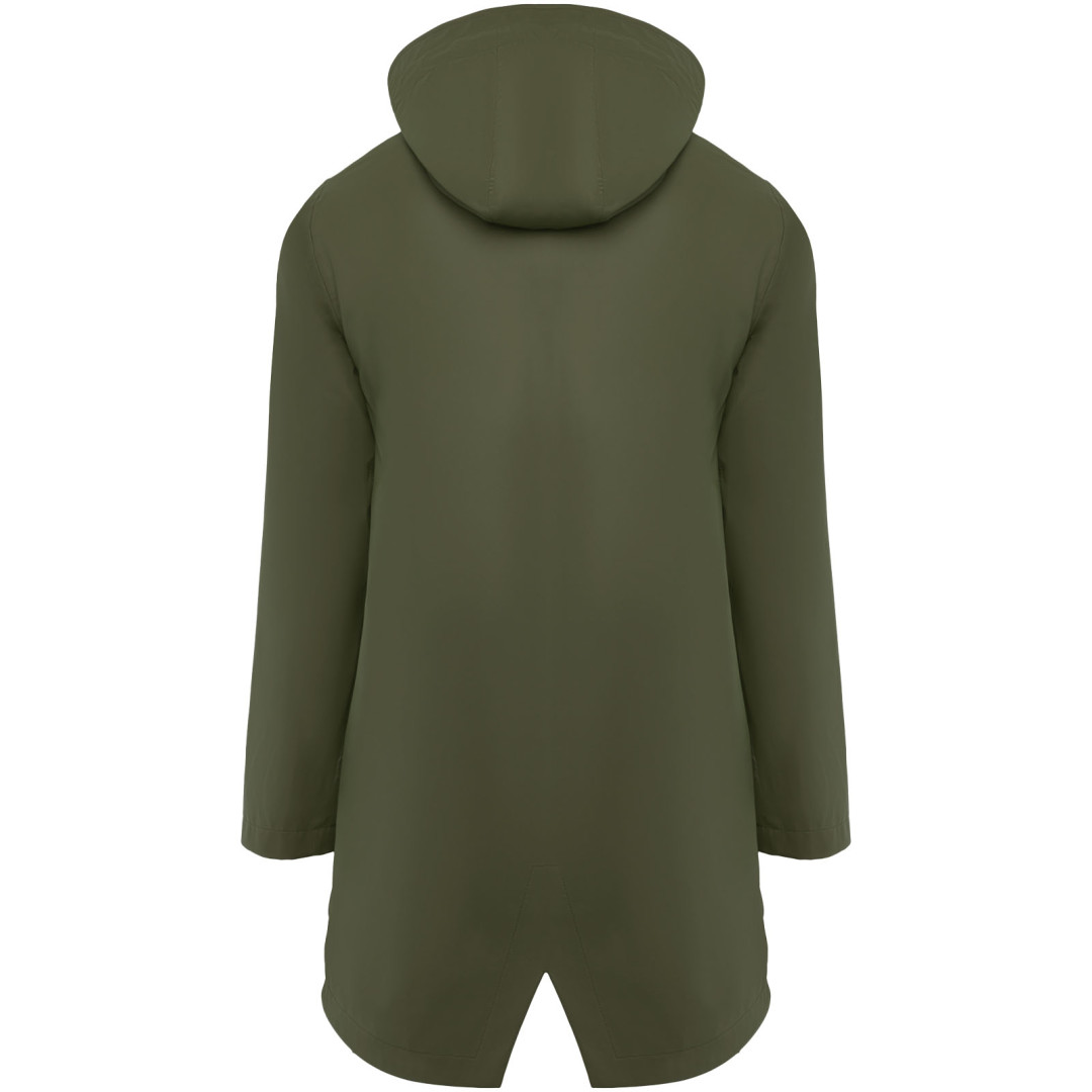 Nepremokavá pláštenka. Kapucňa so šiltom. Zateplené zipsy a švy. Kontrastné detaily v čiernej farbe. Dve bočné vrecká na zips. Rozparky na zadnom leme. Odnímateľný štítok. Nepremokavá. Modelka meria 185 cm a má na sebe veľkosť M.