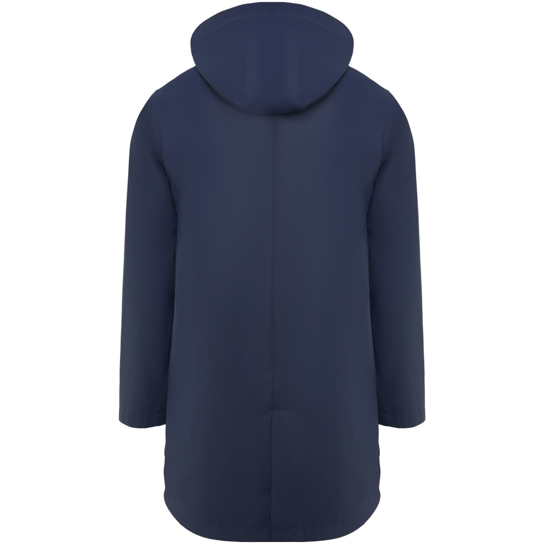 Nepremokavá pláštenka. Kapucňa so šiltom. Zateplené zipsy a švy. Kontrastné detaily v čiernej farbe. Dve bočné vrecká na zips. Rozparky na zadnom leme. Odnímateľný štítok. Nepremokavá. Modelka meria 185 cm a má na sebe veľkosť M.