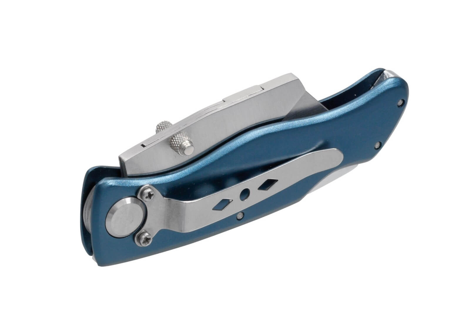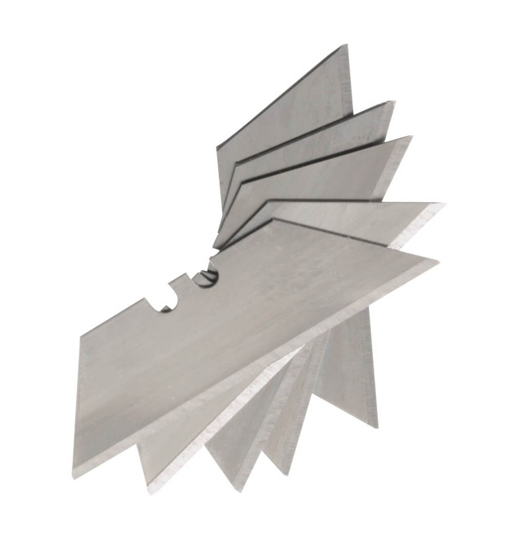 Skladací orezávací nôž MA-BU, skladacie: ľahko meniteľná mangánová čepeľ, vr. 5 náhradné čepelí v priehľadnom boxe, ergonomická rukoväť, spona na opasok celková hmotnosť: cca. 86 g