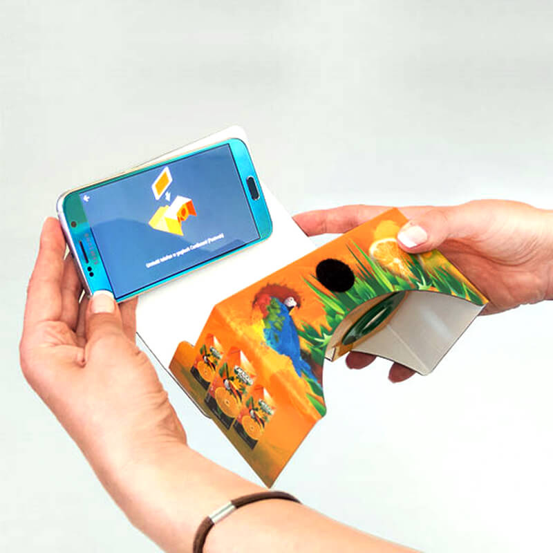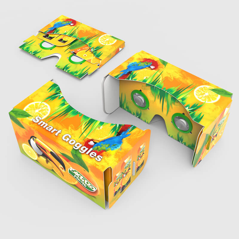 Tyto slim 3D virtuální brýle jsou vyrobeny a složeny z kartonu, takže jsou velmi skladné a snadno přenosné. S pomocí brýlí máte možnost vidět prostorové efekty ve vybraných aplikacích pro smartphony. Mobilní telefon jednoduše vložíte do určeného otvoru v brýlích a můžete začít sledovat. Okuliaře jsou kompatibilní také s chytrými telefony velkých rozměrů a zároveň ergonomicky uspůsobené, aby dobře seděly na obličeji. Díky celoplošnému potisku můžete mít brýle ve vybraném designu.