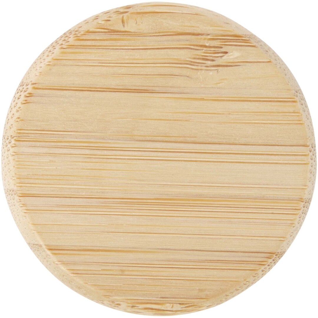 Jednostenná sklenená fľaša na vodu so skrutkovacím bambusovým viečkom, ktoré pochádza z udržateľnejších a spoločensky zodpovednejších zdrojov. Súčasťou je pohodlné silikónové pútko na jednoduché prenášanie. Dodáva sa v darčekovej krabičke z recyklovanej lepenky. Objemová kapacita: 500 ml.