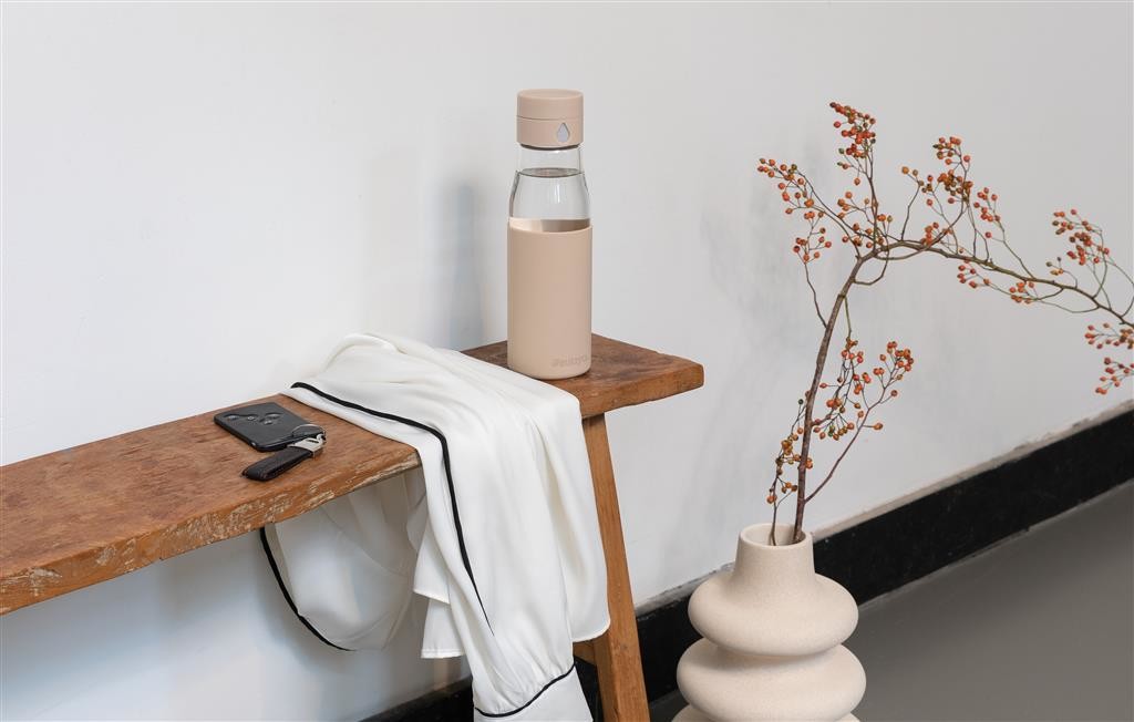 Sledujte svoj každodenný pitný režim s touto múdro navrhnutou, nepriepustnou, sklenenou fľašou na vodu z kolekcie Ukiyo. Viečko po každom naplnení fľaše a manuálnym otočením viečka značí väčšiu kvapku vody, čím tak nestratíte prehľad o vypitom množstve vody. Telo fľaše je vhodné do umývačky riadu. Objem 600 ml.