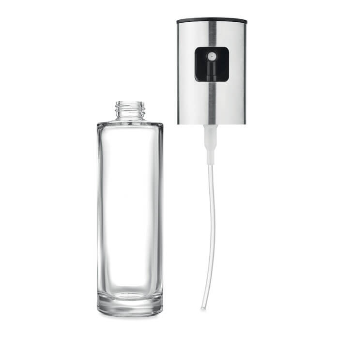 Sklenený dávkovač oleja v spreji s viečkom z nerezovej ocele. Objem: 100 ml. Vďaka tomuto praktickému kuchynskému nástroju ľahko nastriekate olej na panvicu alebo na jedlo. Už nikdy si na šalát nenakvapnite príliš veľa olivového oleja. Naplňte sklenený dávkovač vybraným olejom a rozprášte ho na svoje obľúbené zdravé jedlo.