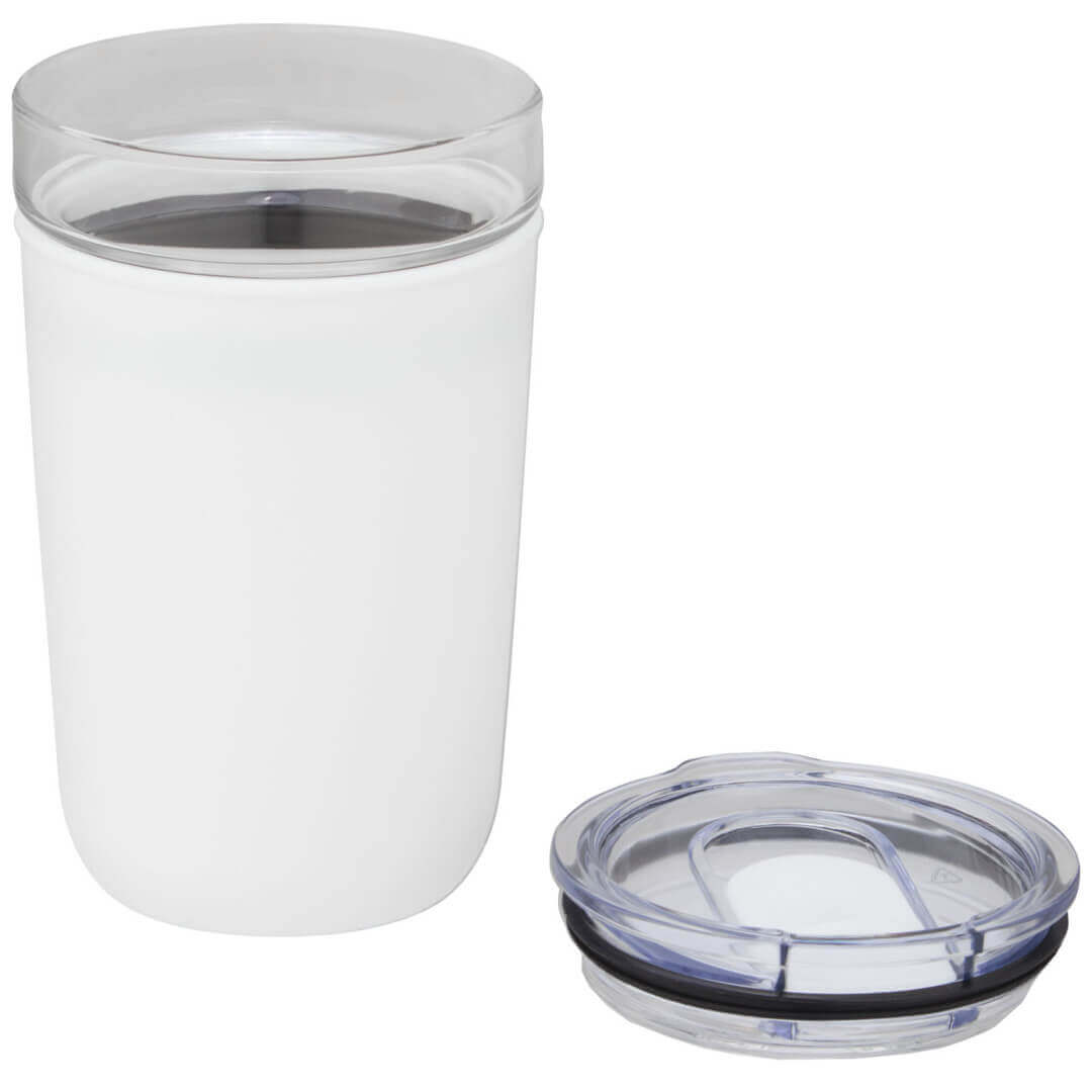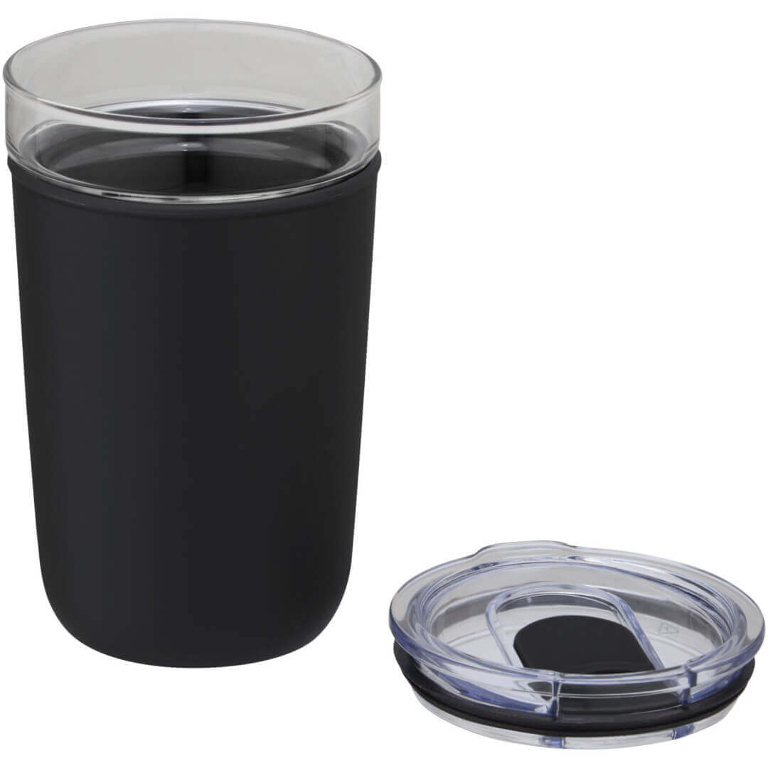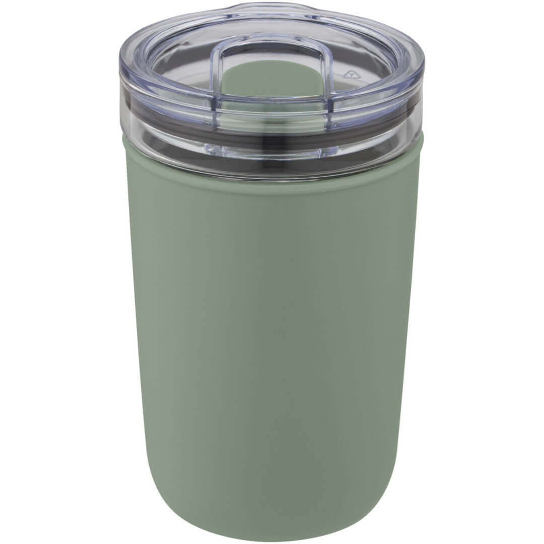 Sklenený kelímok chránený obalom z recyklovaného plastu. Téglik je vyrobený zo 100% odolného borosilikátového skla, ktoré zachováva čerstvosť nápoja a neobsahuje žiadne škodlivé chemikálie. Bez BPA, testované a schválené podľa nemeckej legislatívy o bezpečnosti potravín (LFGB). Testované a schválené na obsah ftalátov podľa predpisov REACH. Téglik sa zmestí pod väčšinu kávovarov. Objem je 420 ml. Po sňatí plastového puzdra je možné umývať v umývačke. Dodáva sa v darčekovej krabičke z recyklovanej lepenky.
