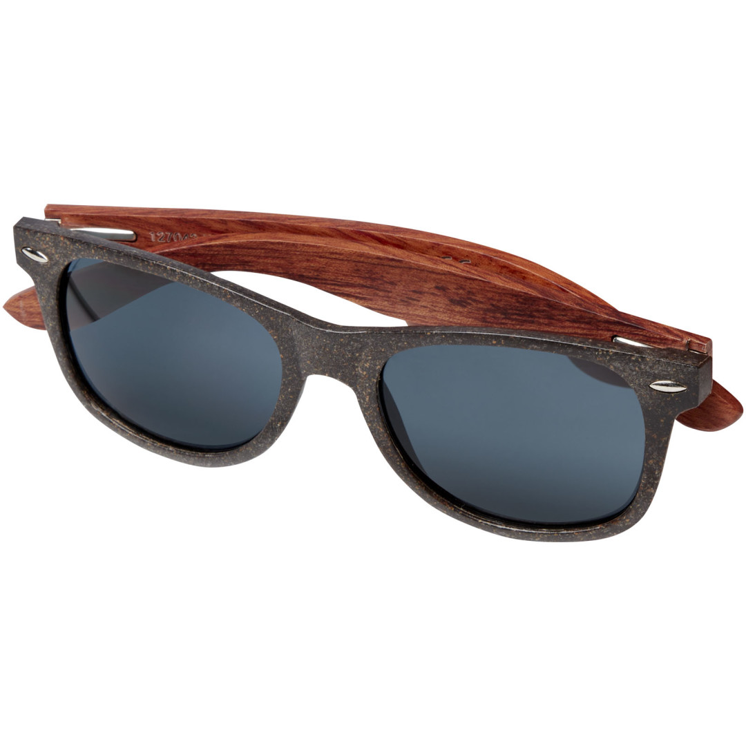 Tieto udržateľné slnečné okuliare v retro dizajne sú ideálnym propagačným darčekom počas letných festivalov, podujatí alebo iných letných vonkajších aktivít. Rám je vyrobený zo zmesi plastu a kávových vlákien, čo znižuje použitie nových plastov. Ľahké a pohodlné nožičky sú taktiež vyrobené z kávových vlákien z udržateľných, ekologicky a sociálne zodpovedných zdrojov. Okuliare spĺňajú normu EN ISO 12312-1, majú sklá UV400, ktoré sú klasifikované ako kategória 3, takže sú ideálnou voľbou na ochranu pred jasným slnečným svetlom.