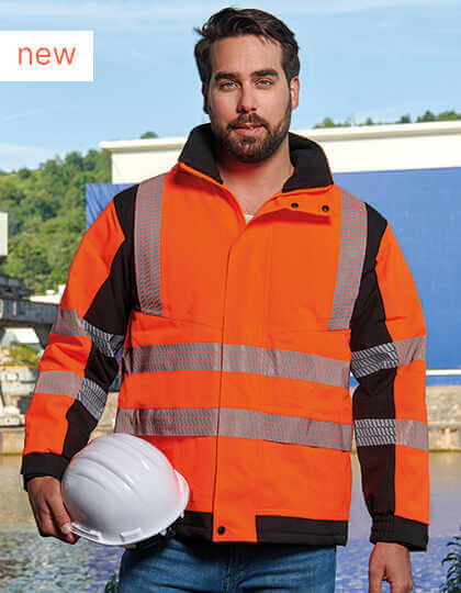 Certifikované podľa EN ISO 20471: 2013 + A1: 2016, trieda 3 a EN 343: 1, oranžová tiež vyhovuje GO/RT 3279 | Vodotesné do vodného stĺpca 8 000 mm | Vetruvzdorné | Segmentovaný reflexný pruh pre voľnosť pohybu | Zips s ochranou proti vetru po celej dĺžke a patentky vo výstrihu | Vrecká so zipsom na oboch stranách | Dve skryté vrecká pod dolnými reflexnými pruhmi | Kapucňu je možné zložiť do goliera | Manžety, ktoré možno nastaviť zapínaním na suchý zips | Ďalšie vrecko na vnútornej strane | Možno prať do 30 ° C | Vybavené čiarovým kódom EAN