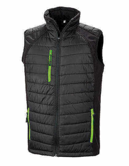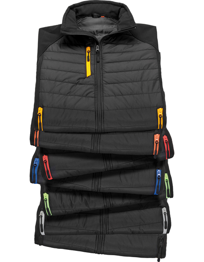 Materiál tela: vonkajšia strana: 100% recyklovaný polyester JIAREN®, výplň: 100% recyklovaný polyester REPREVE® 180 g/m², podšívka: 100% polyester. Ramenné panely: 280 g/m² 2-vrstvová mechanická priadza softshell obsahujúca: vonkajšia vrstva – 60 % polyester / 40 % recyklovaný polyester TOPGREEN®, vnútorná vrstva – 70 % polyesterový mikroflís / 30 % recyklovaný polyester TOPGREEN®. Odolné voči vetru. Priedušné. Kontrastné vrecká na zips. Zip YKK s ochranou brady vpredu po celej dĺžke. Polstrovaný stojačik. Polstrované telo. Mäkké olemované prieramky. Čierne šnúrky zipsu. Závesný štítok. Funkčný recyklovaný materiál polstrovanie REPREVE® s použitím ekologických materiálov z recyklovaných plastových fliaš a priemyselného odpadu. Ekologický softshellový polyester TOPGREN®, potlačiteľné ramenné panely. Pripravené na opatrenie značkou. Vyrobené z 9 (1litrových) plastových fliaš.
