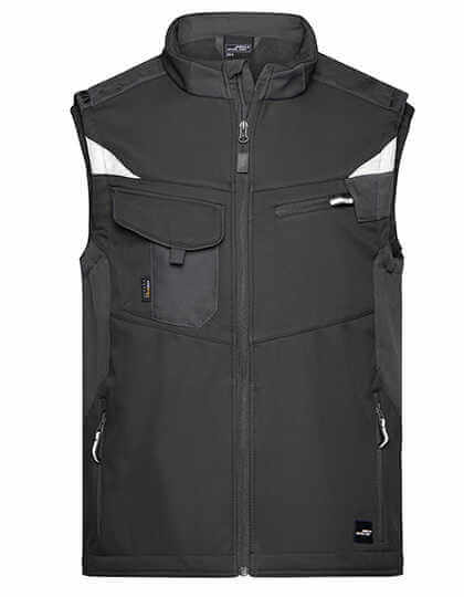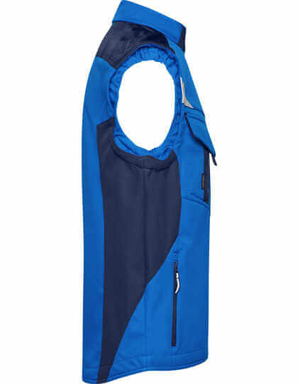 Profesionálna softshellová vesta s vysoko kvalitnými prvkami | Robustný a odolný softshellový materiál | Odolnosť proti vetru a vode (vodný stĺpec 2 000 mm) | Priedušnosť a priepustnosť pre vodnú paru (2 000 g/m²/24 h) | Stojačik, elastické manžety | Oblasť ramien vystužená materiálom CORDURA ® | Krytý zips po celej dĺžke s ochranou proti vetru | Bočné a náprsné vrecká na zips | Náprsné vrecko s príklopkou, vnútorné vrecká | Reflexné prvky (bez ochrannej funkcie/bez osobných ochranných pomôcok) na prieramkoch a vzadu