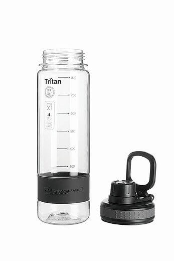 Športová tritanová fľaša Schwarzwolf v šedej farbe s príjemným pogumovaným povrchom, čiernym viečkom a pútkom pre zavesenie. Fľaša neobsahuje BPA, a teda podporuje zdravý životný štýl. Fľaša je vhodná pre studené aj horúce nápoje od -10 C do 80 C. V spodnej časti fľaše je umiestnený silikónový prúžok s logom Schwarzwolf. Balené v darčekovej krabičke Schwarzwolf. Objem: 0,8 l. Materiál: tritan. Rozmery: O 7,3 × 27 cm.